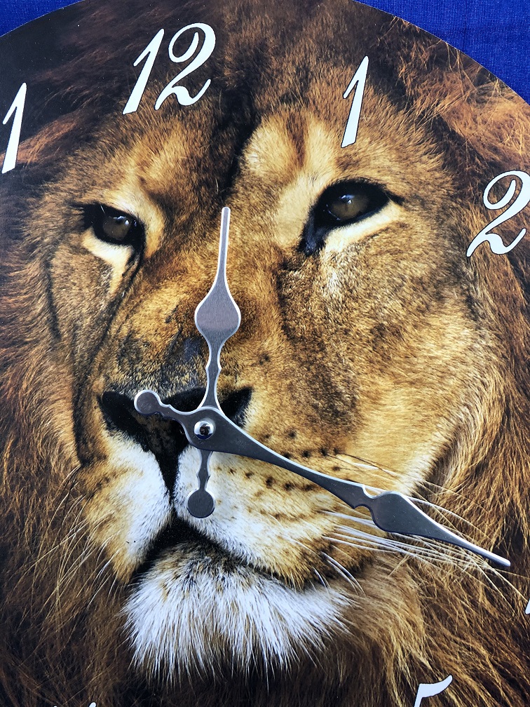 Lieferumfang: 1 Uhrenlöwe, batteriebetrieben (Batterien nicht enthalten)