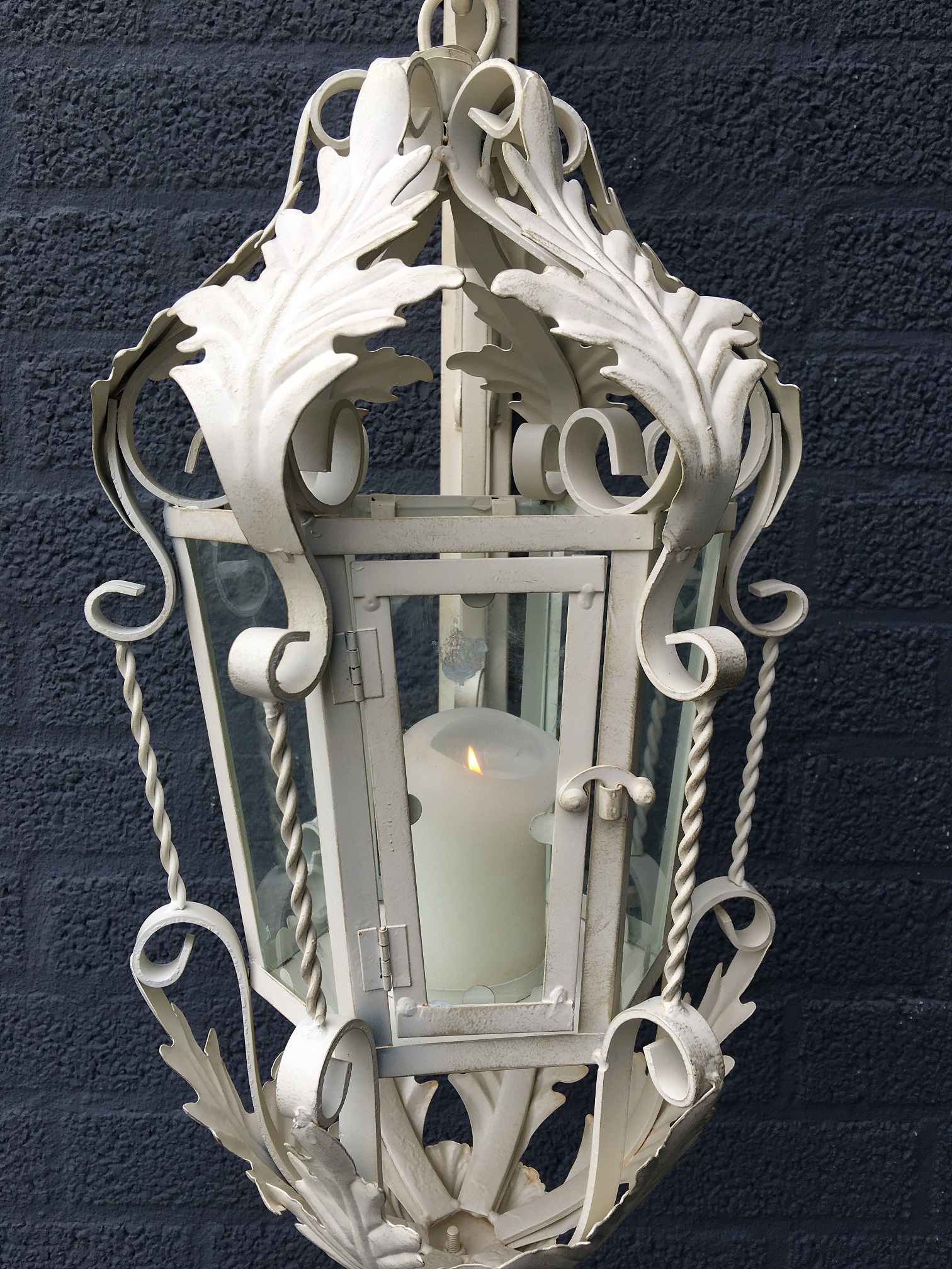 Laterne mit Wandhalterung aus Schmiedeeisen, Old-White-Patina, sieht wirklich toll aus!!!