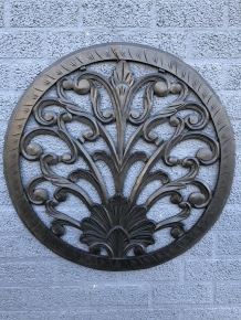 Wandornament rund, dekorativ geschnitzt, schwarz-braun