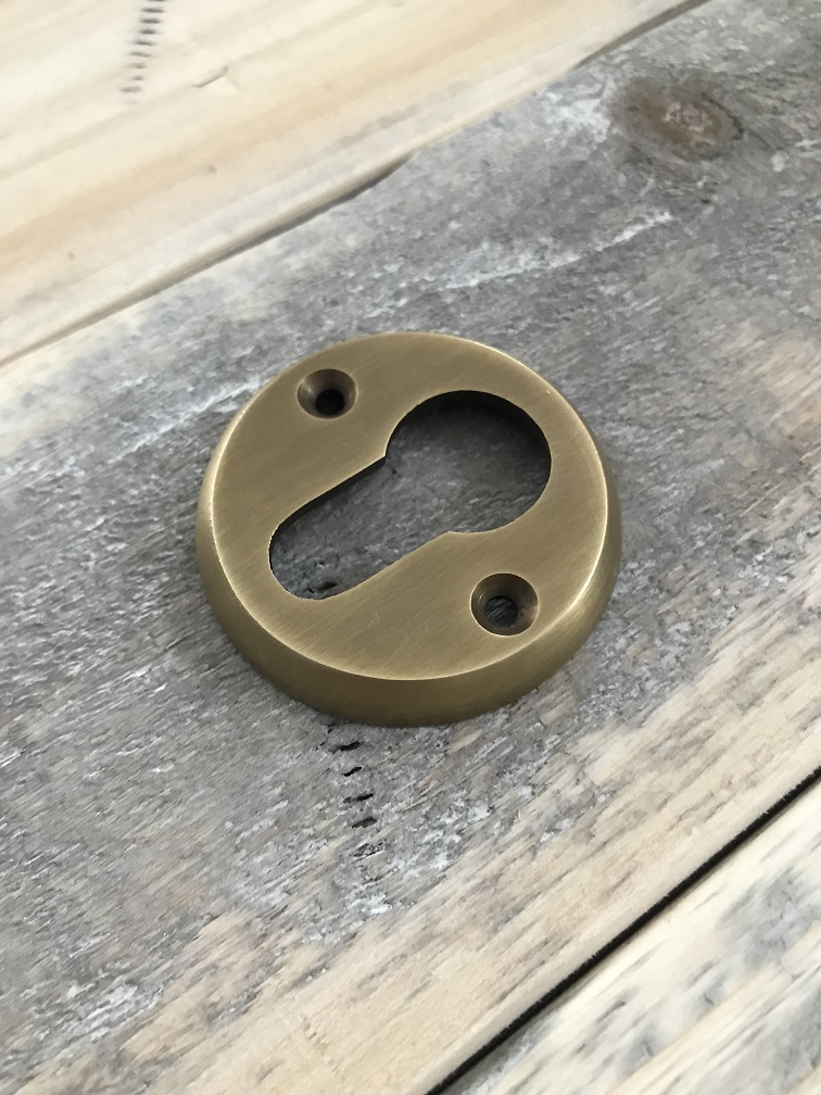 Diese Rosette ist aus hochwertigem Messing gefertigt und mit einer patinierten Oberfläche versehen, die einen schönen gealterten Look erzeugt.