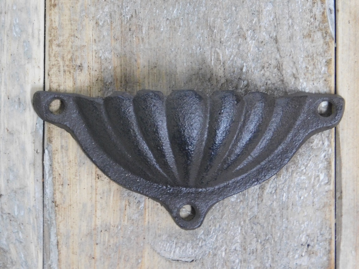 Diese Schiebetürgriffschale schmückt alte und neu gefertigte Türen. Schwere Qualität Eisen Farbe braun. Diese Türverkleidung eignet sich sowohl für die Anbringung an Möbeln als Zubehör im antiken Stil als auch an der Tür als Beschlag. Sie ist ideal für eine Schiebetür oder einen Schubladen- oder Schrankgriff usw.