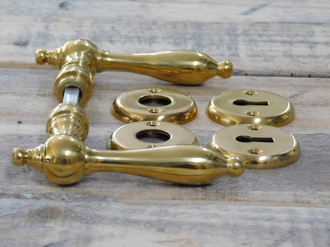 Türdrücker mit Rosetten, Messing poliert, toller Nostalgie-Türbeschlag Landhaus.