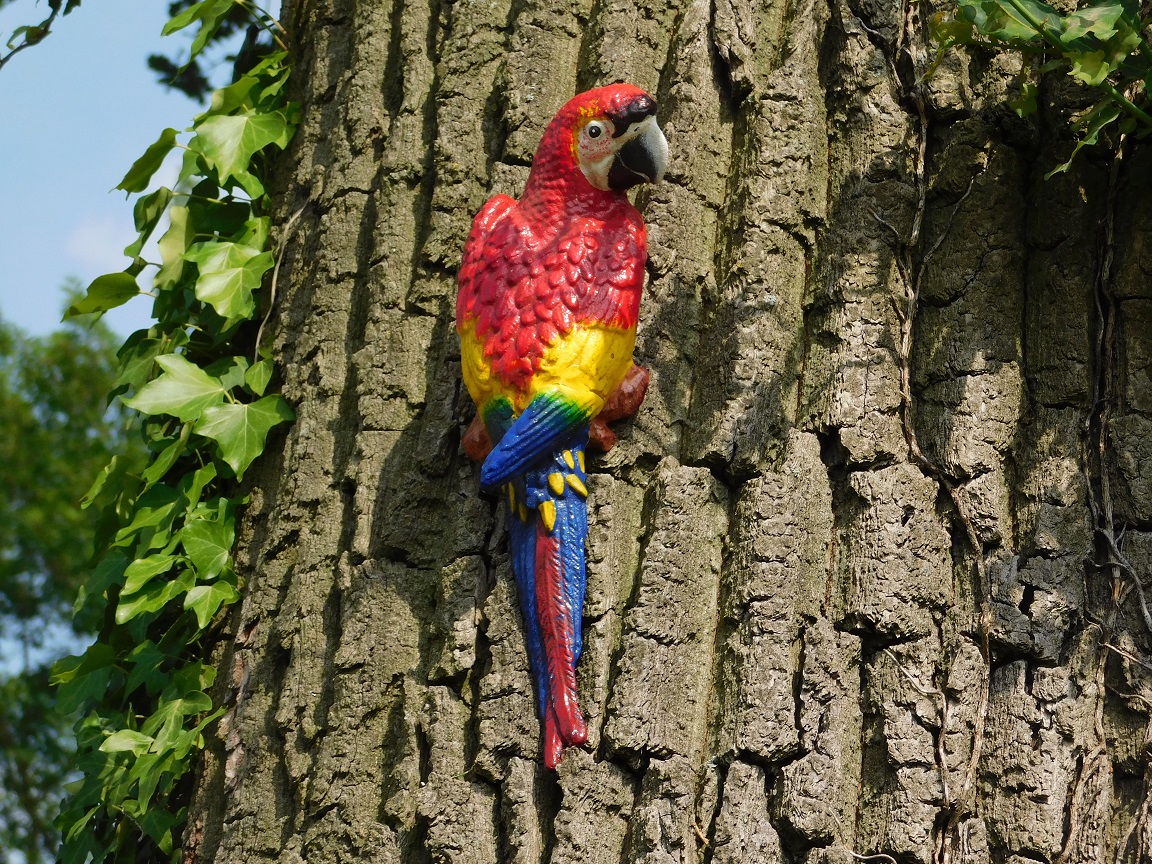 Mit seiner detaillierten Verarbeitung und den leuchtenden Farben verleiht dieser dekorative Papagei jedem Raum einen verspielten und tropischen Touch.