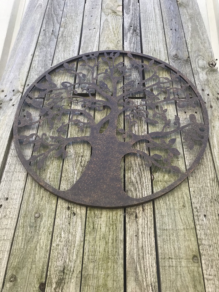 Schönes schweres Schmiedeeisen in der Farbe schwarz-braun mit 6 Armen und 6 Kerzenhaltern, und in der Mitte ein Glas für z.B. ein Wachslicht.