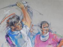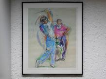 Die Figur ist ca. 57 cm hoch und 40 cm breit und fällt durch ihr farbenfrohes Aussehen sofort ins Auge.