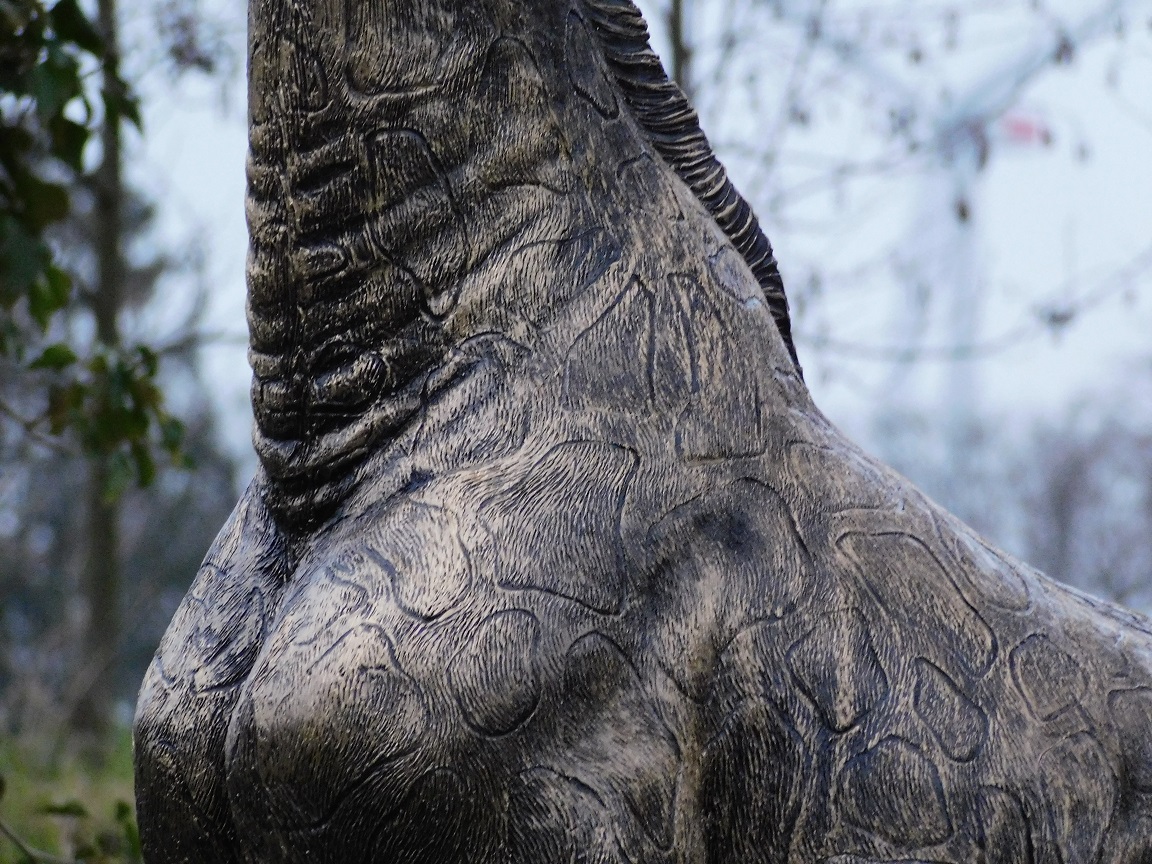 Suchen Sie eine exklusive dekorative Skulptur, die sofort Eindruck macht? Dann ist diese XL-Giraffenskulptur die perfekte Wahl.