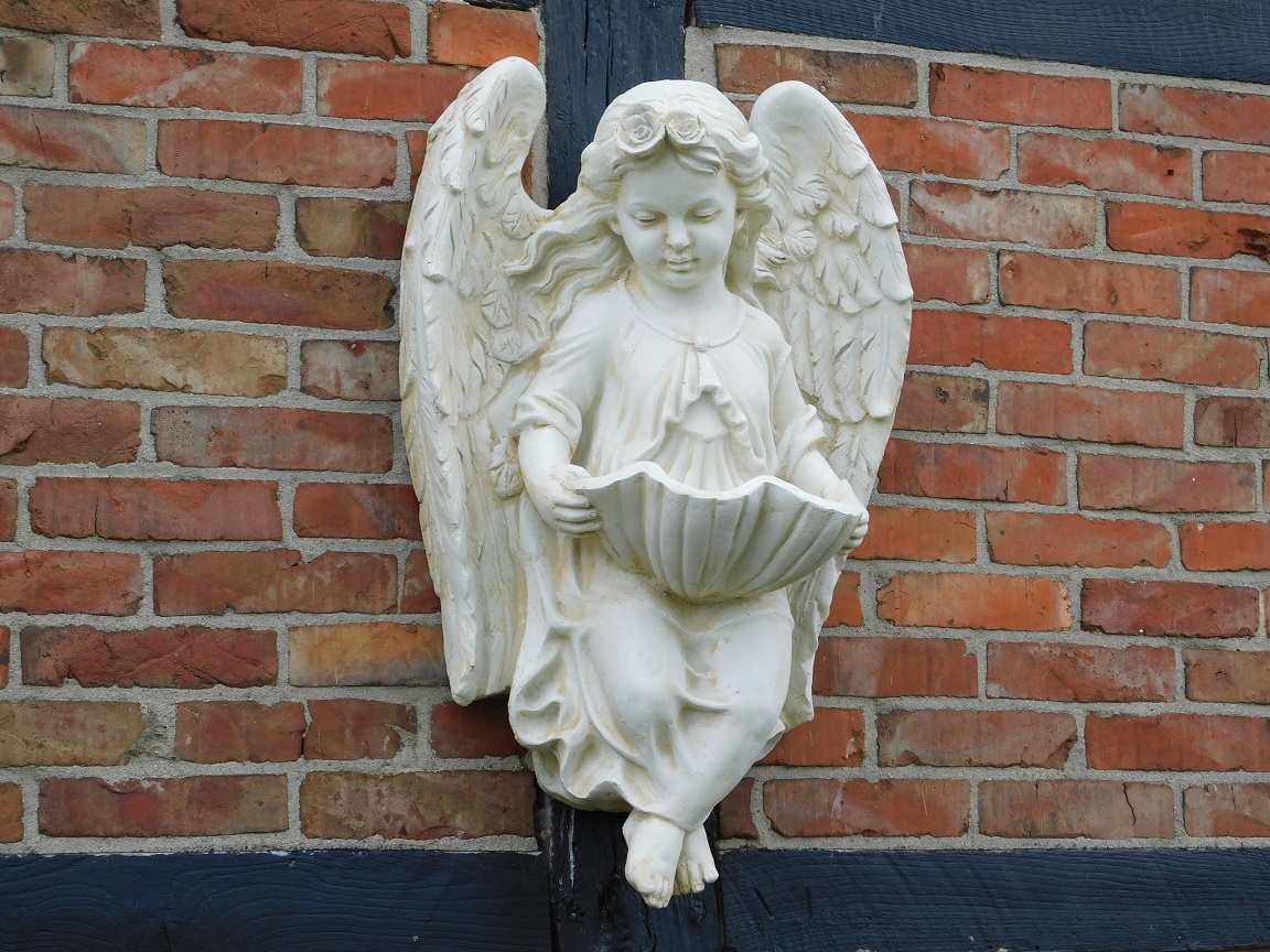 Wunderschöner Wandschmuck eines Engels mit Schale.