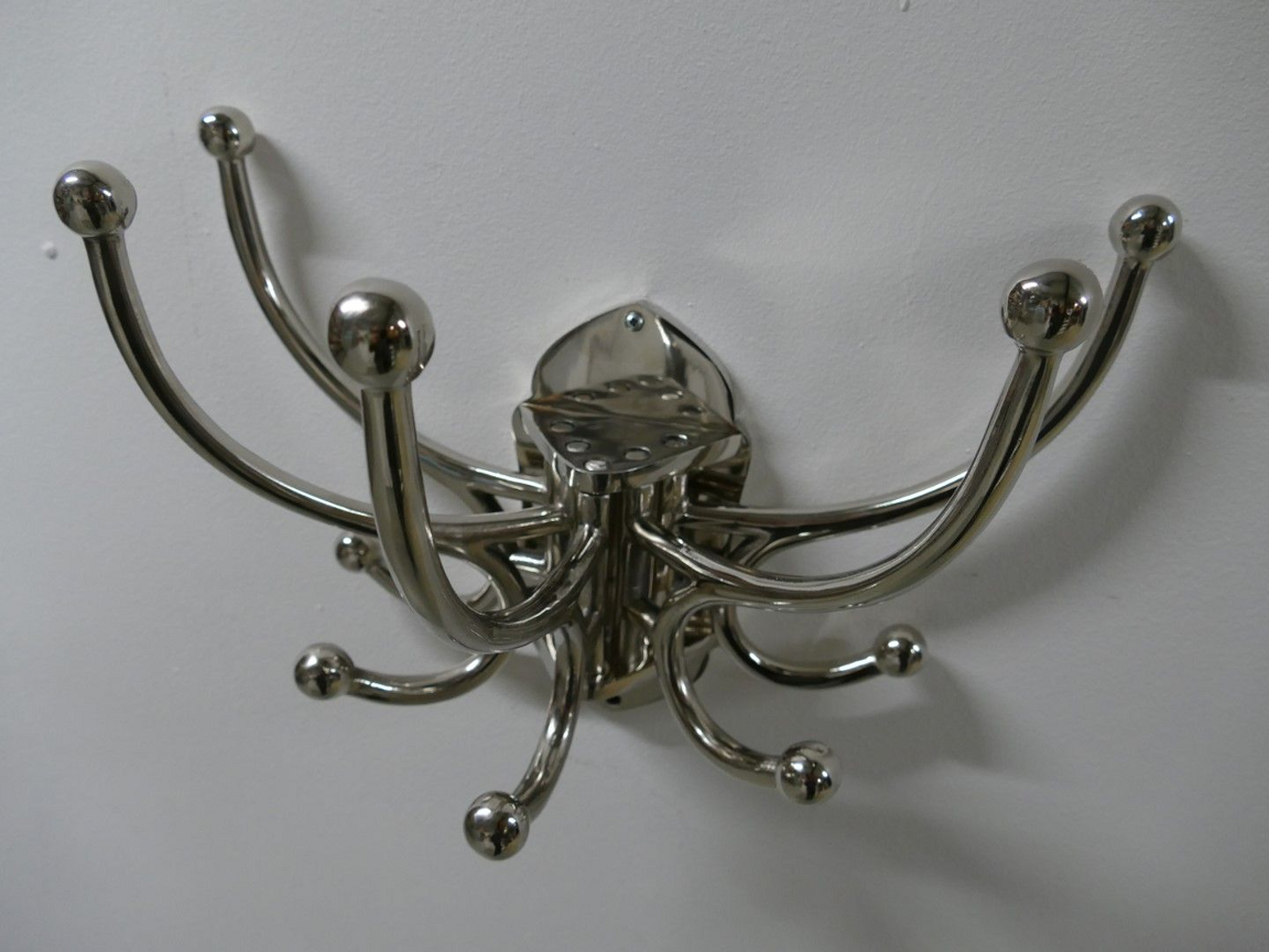 Die glänzende, vernickelte Oberfläche verleiht ihr einen luxuriösen Look, während das verspielte Design mit den geschwungenen Haken für einen zeitgemäßen Stil sorgt.