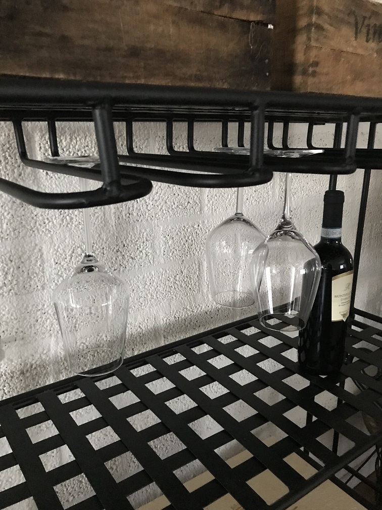 Einzigartiger und exklusiver Schrank, für den Weinliebhaber ganz besonders, da er für den Wein konzipiert ist! In diesem Weinschrank liegen Weinflaschen und hängen Weingläser, es gibt auch Platz für andere Dinge oder noch mehr Wein! Besonderes Stück!