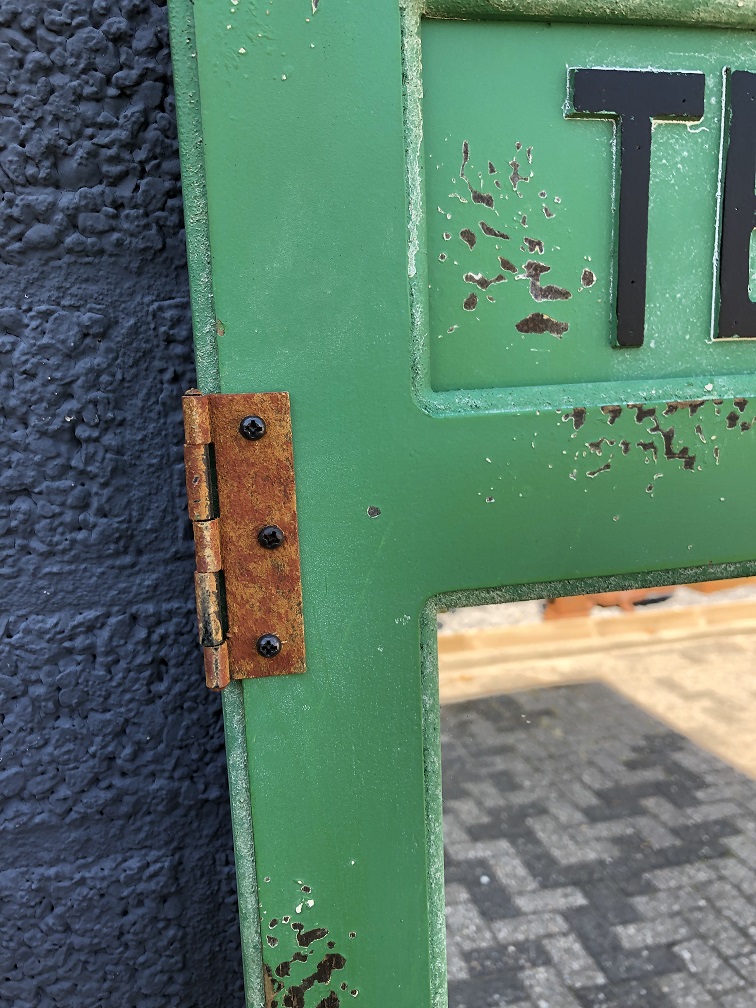 Lieferumfang: 1 x Metall-Holz-Türspiegel, groß, Spiegelglas.