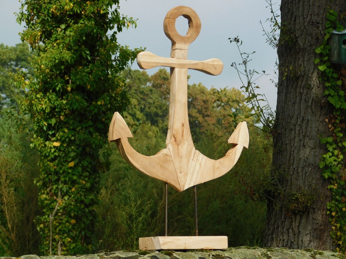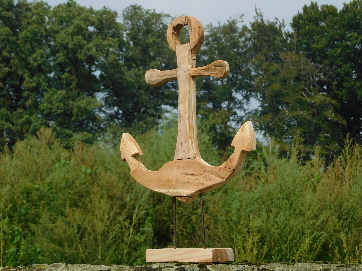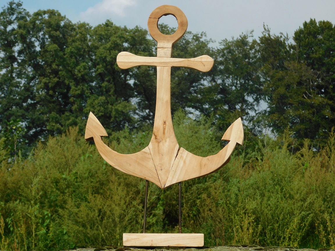 Handgefertigter Anker auf Ständer - 75 cm - Teakholz
