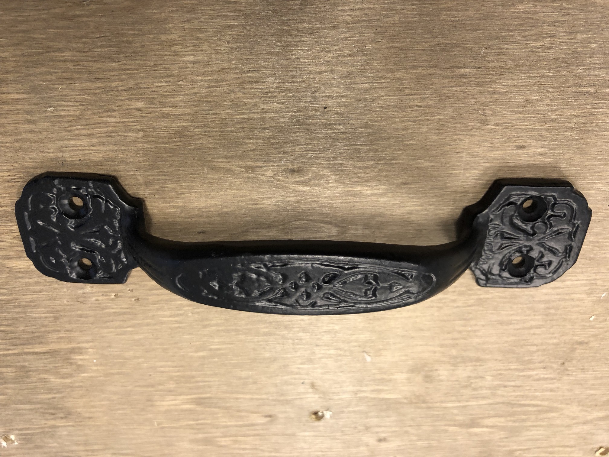 Formschöner Griff aus massivem Eisen, Farbe antik-schwarz.