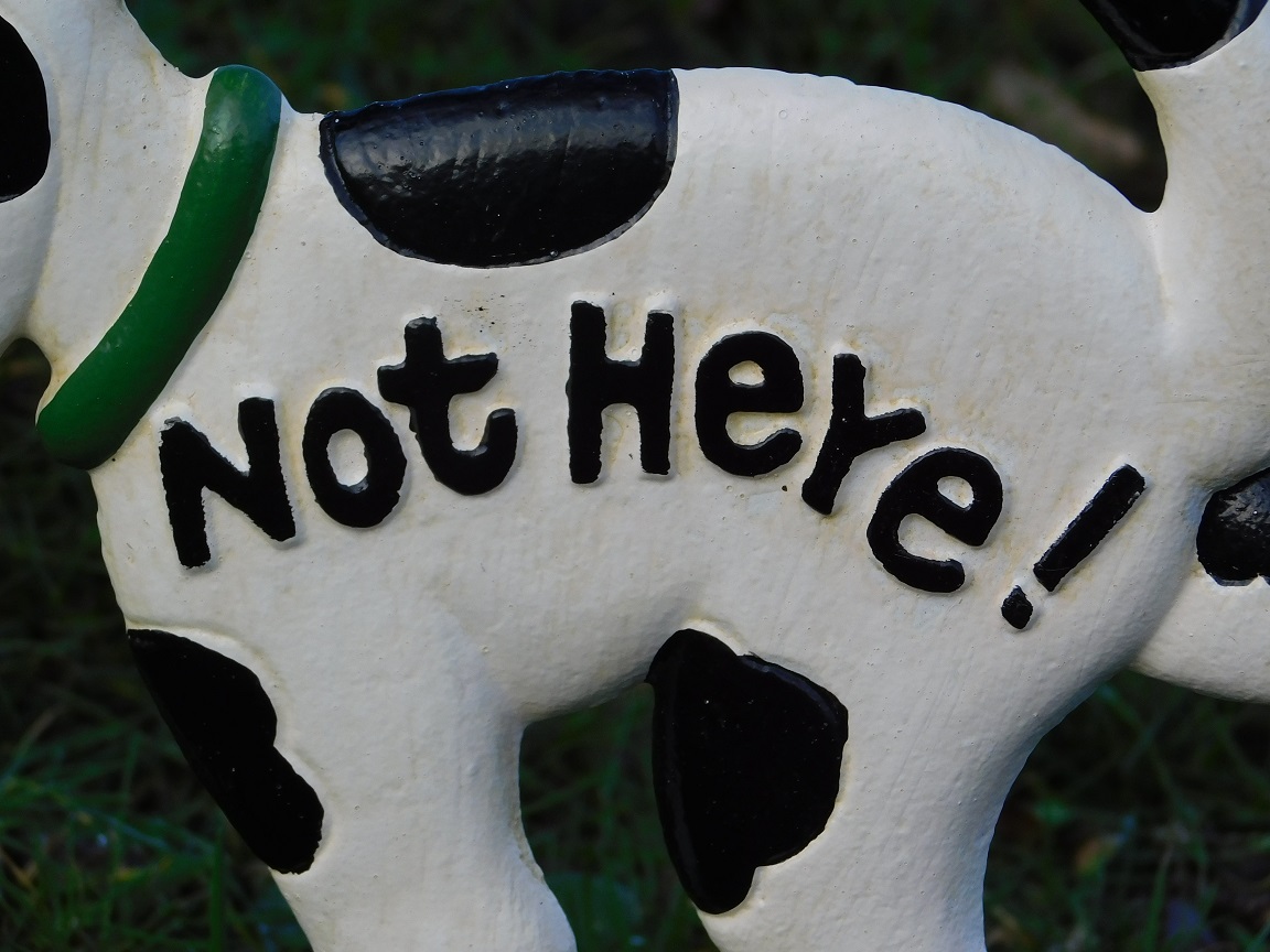 Das Hundeschild ''Not Here'' ist aus Gusseisen gefertigt.