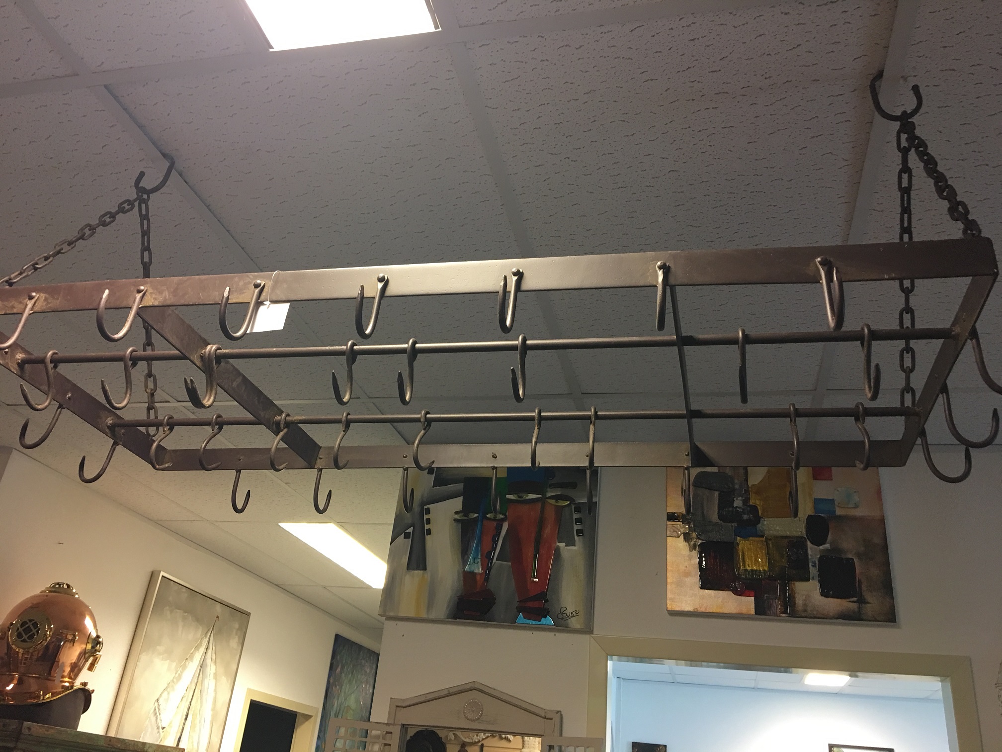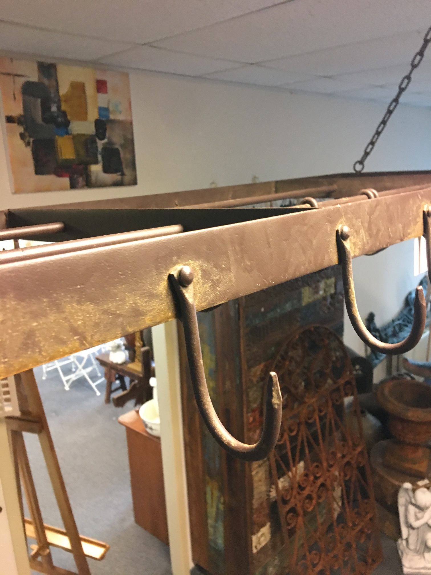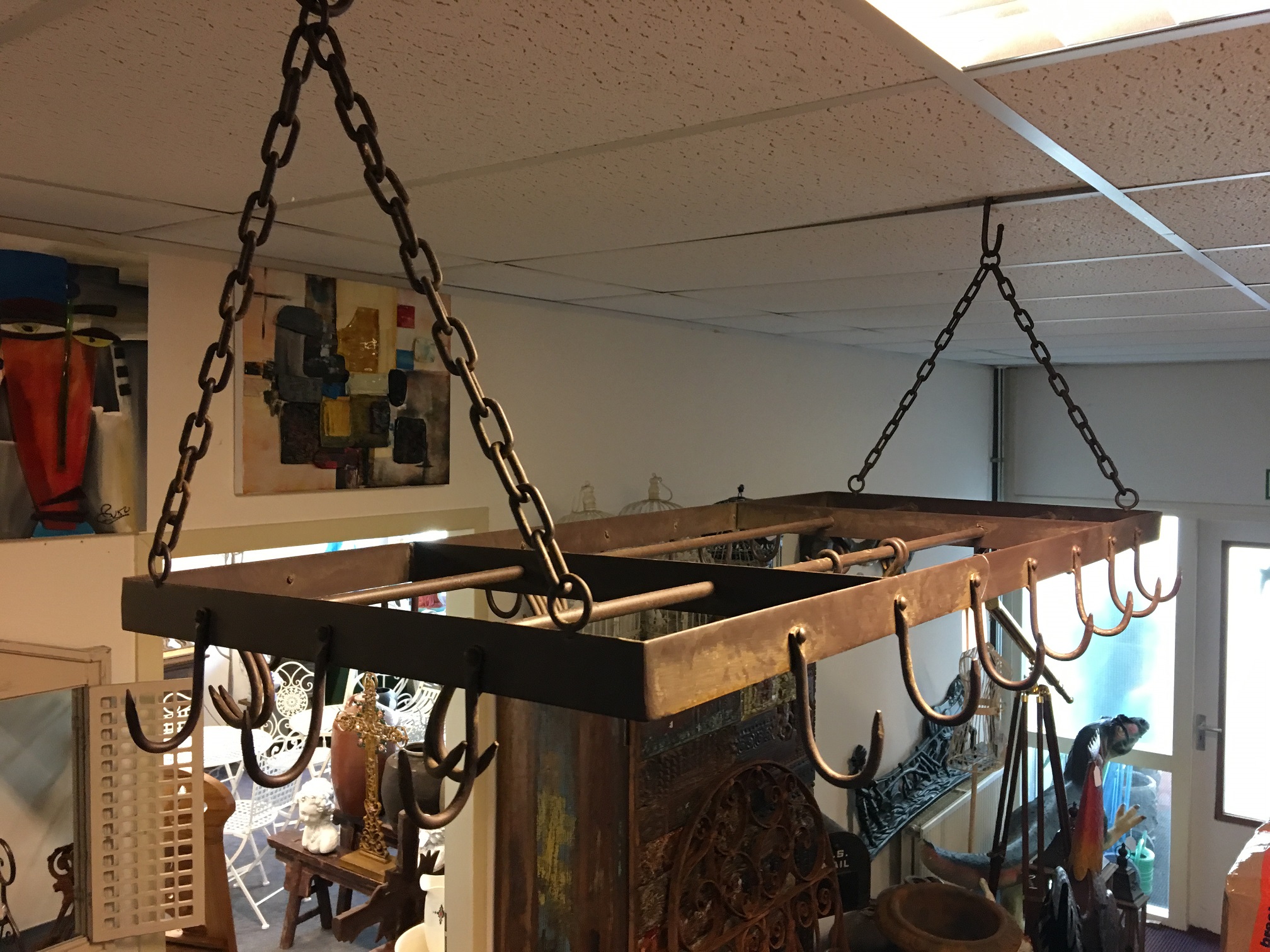 tags: Dekoration Küche, Küchendekoration, Jagd, Tassen, Tassenhänger, Wildbret Hänger, Wildbret, Halter, Aufhänger, aufhängen, Kräuter, Knoblauchzopf, Kräuter trocknen, Tassen aufhängen, Kranz Eisen,