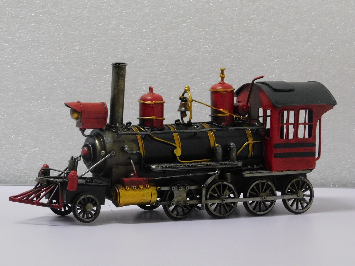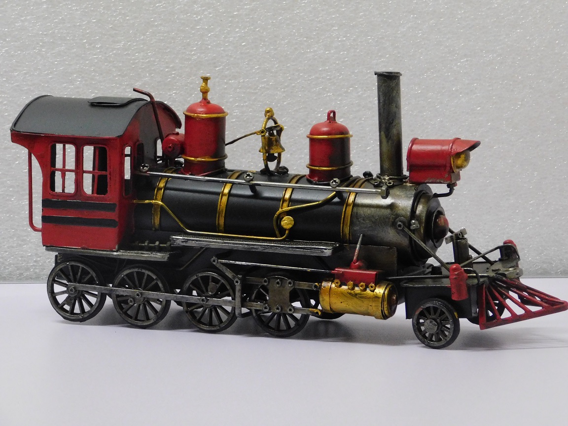 Entdecken Sie den Charme vergangener Zeiten mit dieser wunderschönen handgefertigten Dampflokomotive aus Metall.