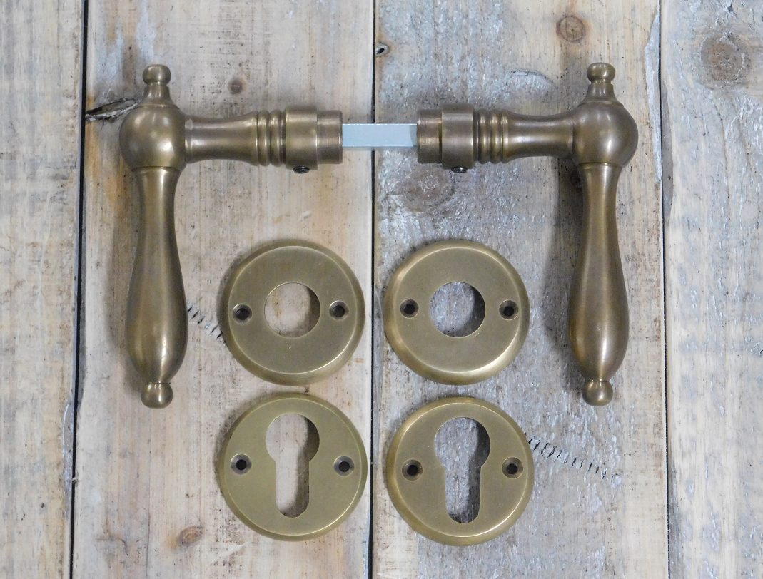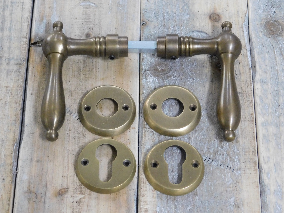 Schönes Set, sehr stilvoll aus Messing gefertigt, Top-Qualität! Mit diesem Set verleihen Sie Ihrer Tür einen nostalgischen Look und Ihrem Haus viel mehr Atmosphäre!