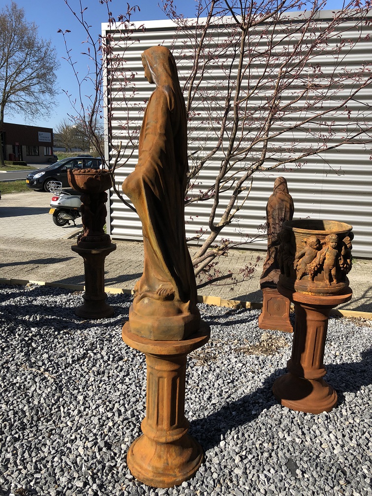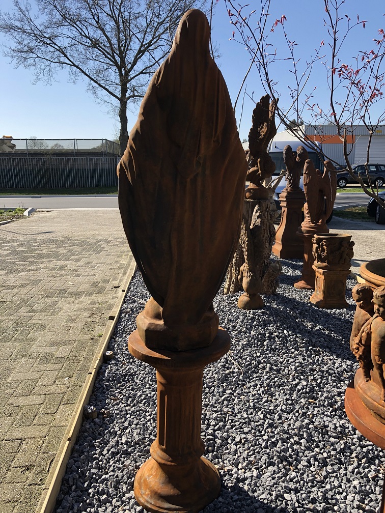 Mutter Maria / Mutter Maria, große Vollsteinskulptur auf Sockel aus Oxid
