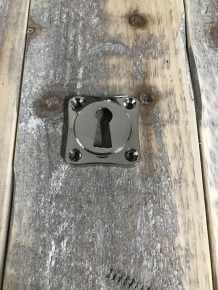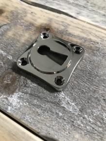Elegante Schlossrosette, komplett aus poliertem Nickel gefertigt.