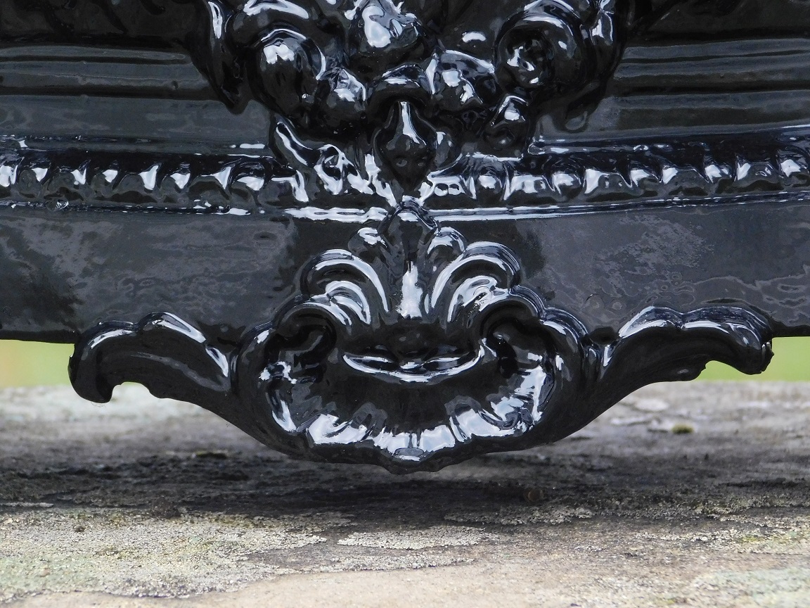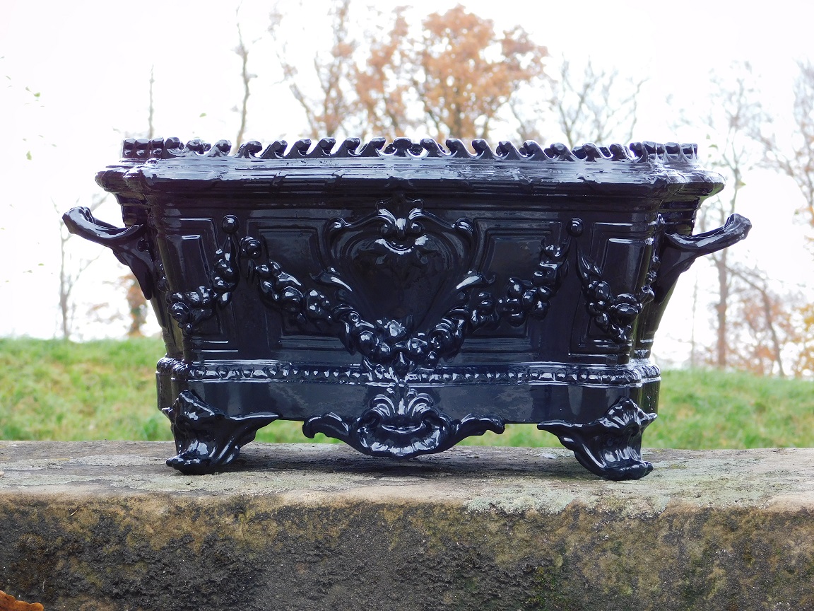 Aus robustem Aluminium gefertigt und in Schwarz lackiert, strahlt dieses Pflanzgefäß eine klassische Jugendstilatmosphäre aus.