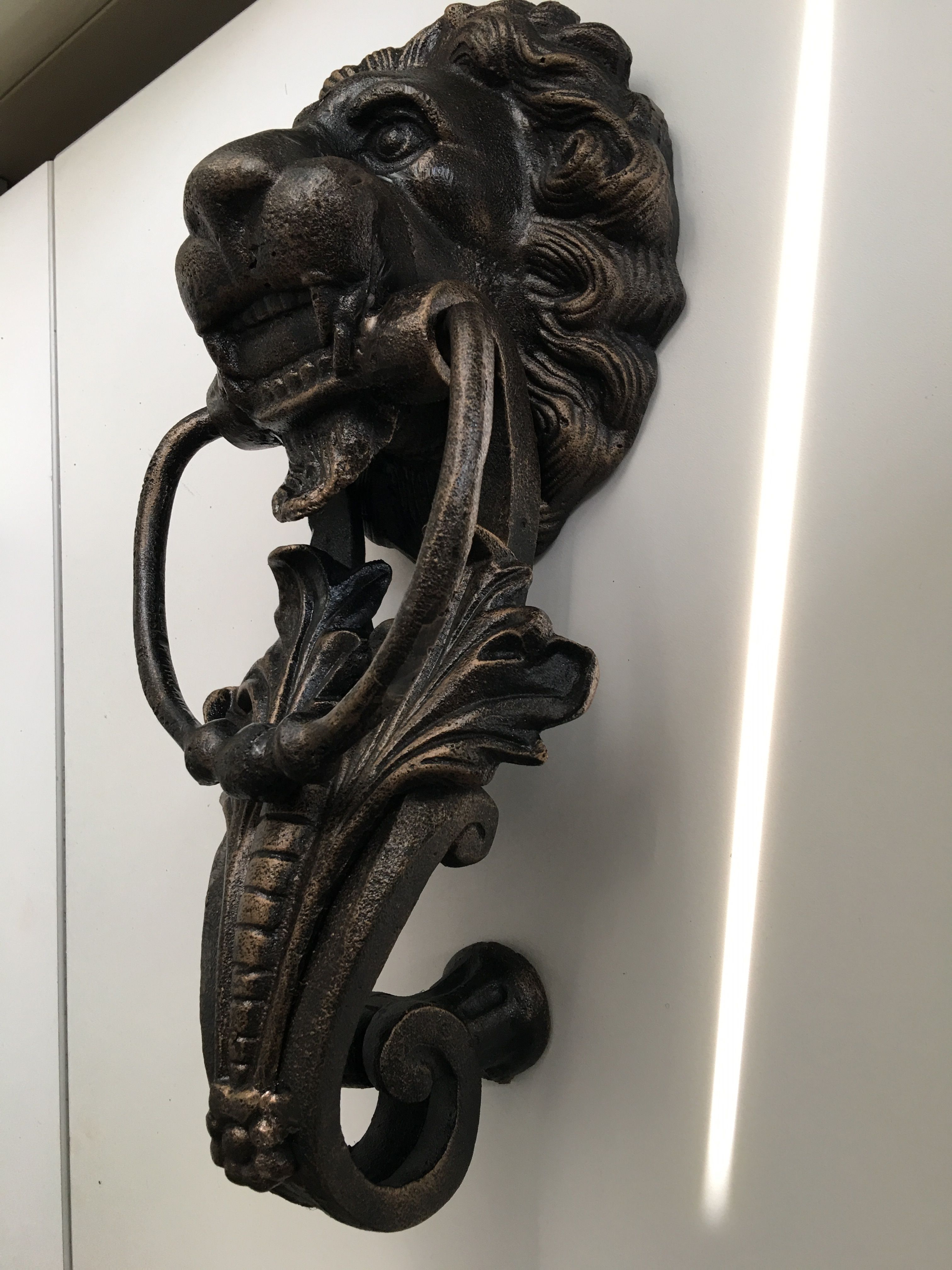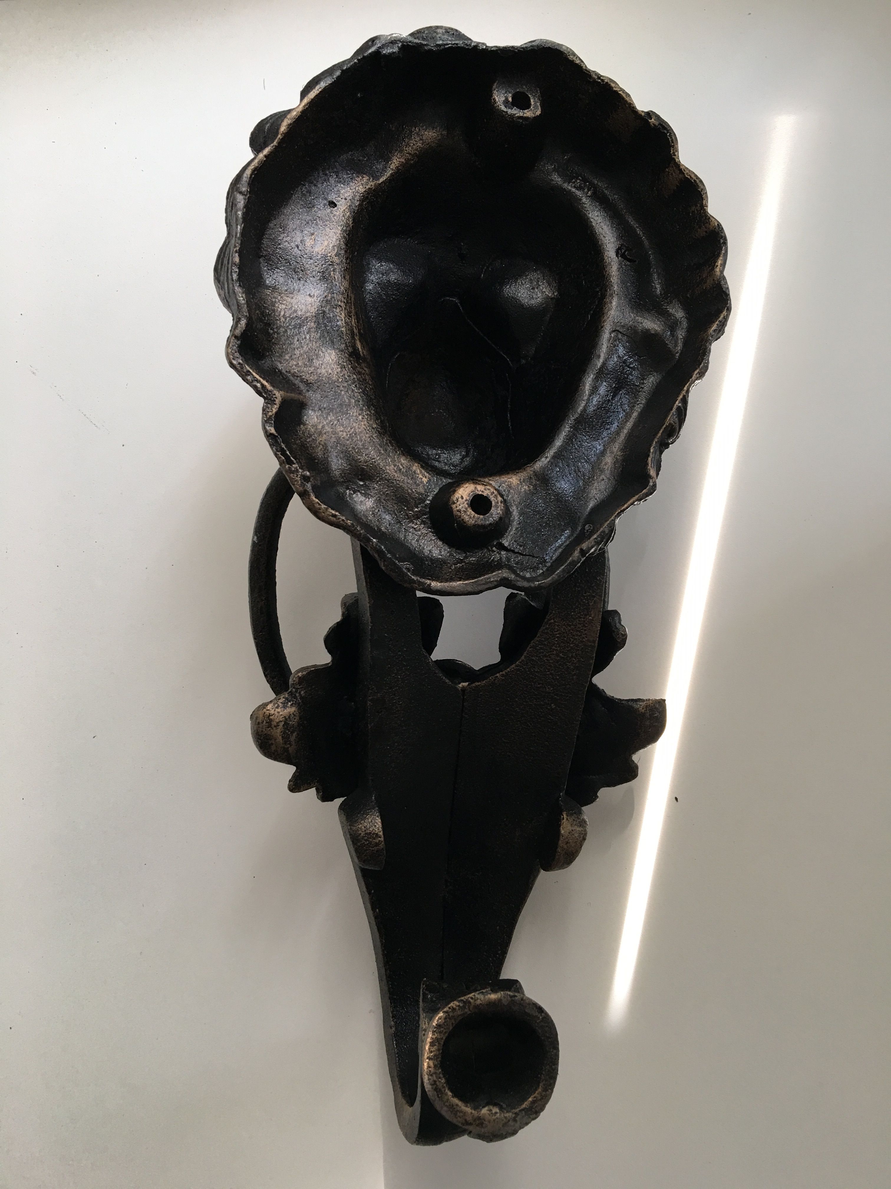 Dieser Türklopfer findet sich an großen Haustüren oder Gartentoren oder wird als Dekoration an einem gediegenen Ort angebracht.