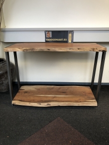 Doppelte Baumstammtisch mit gusseisernem fuss als beistelltisch