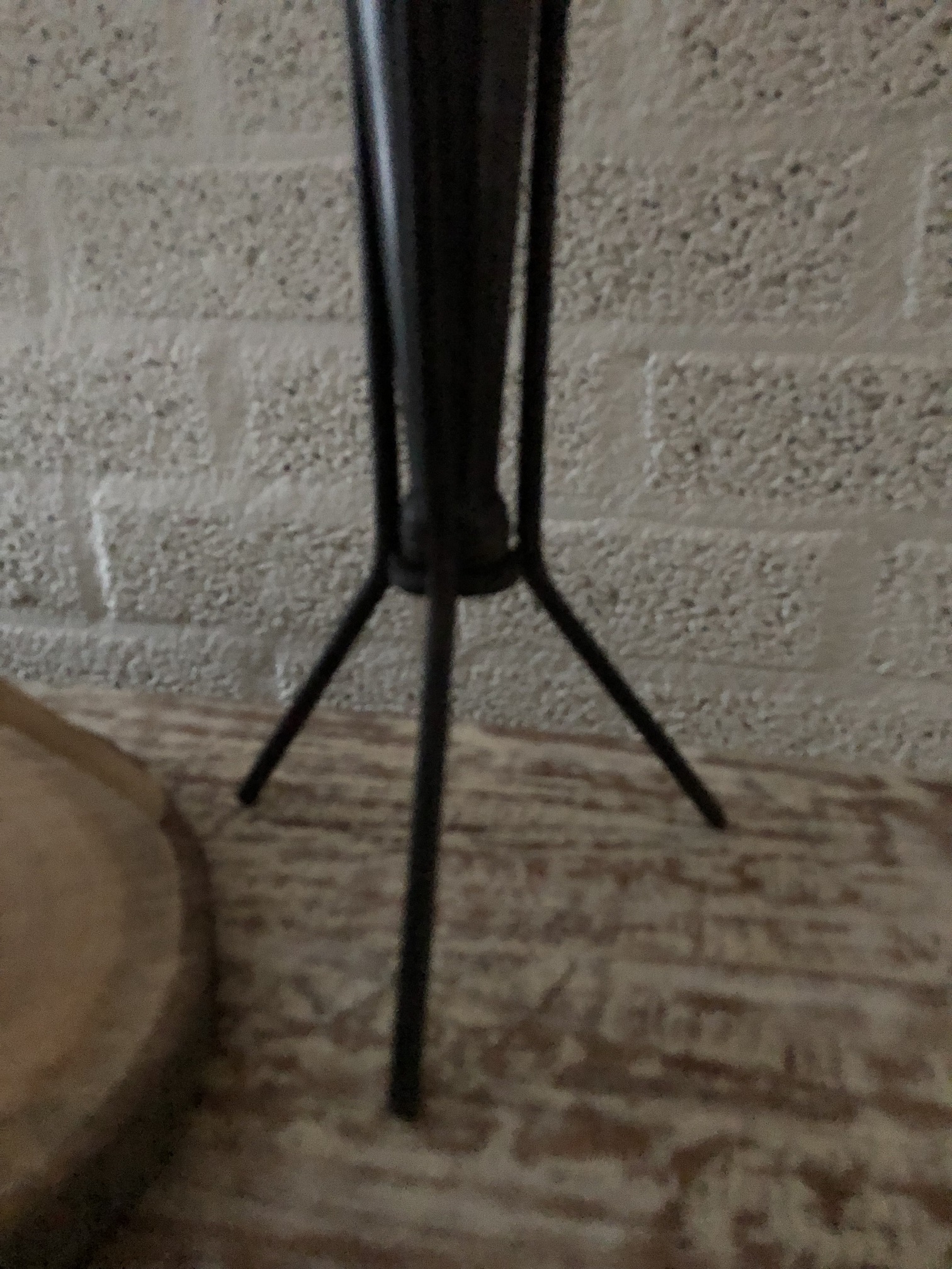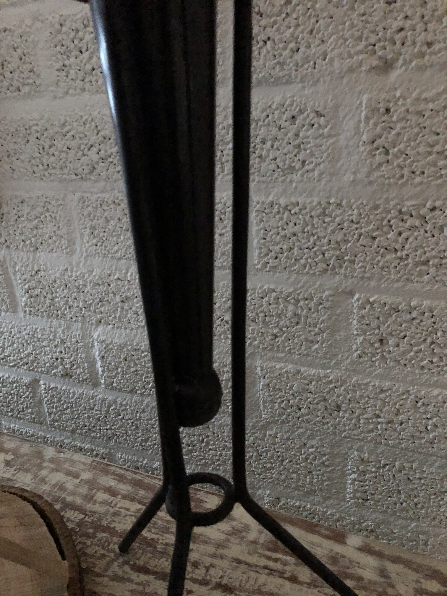 Der Ständer besteht aus Metall und hat einen Korpus in der Farbe schwarz-braun, hat einen stabilen Stand durch die 3 Füße unter dem Rahmen