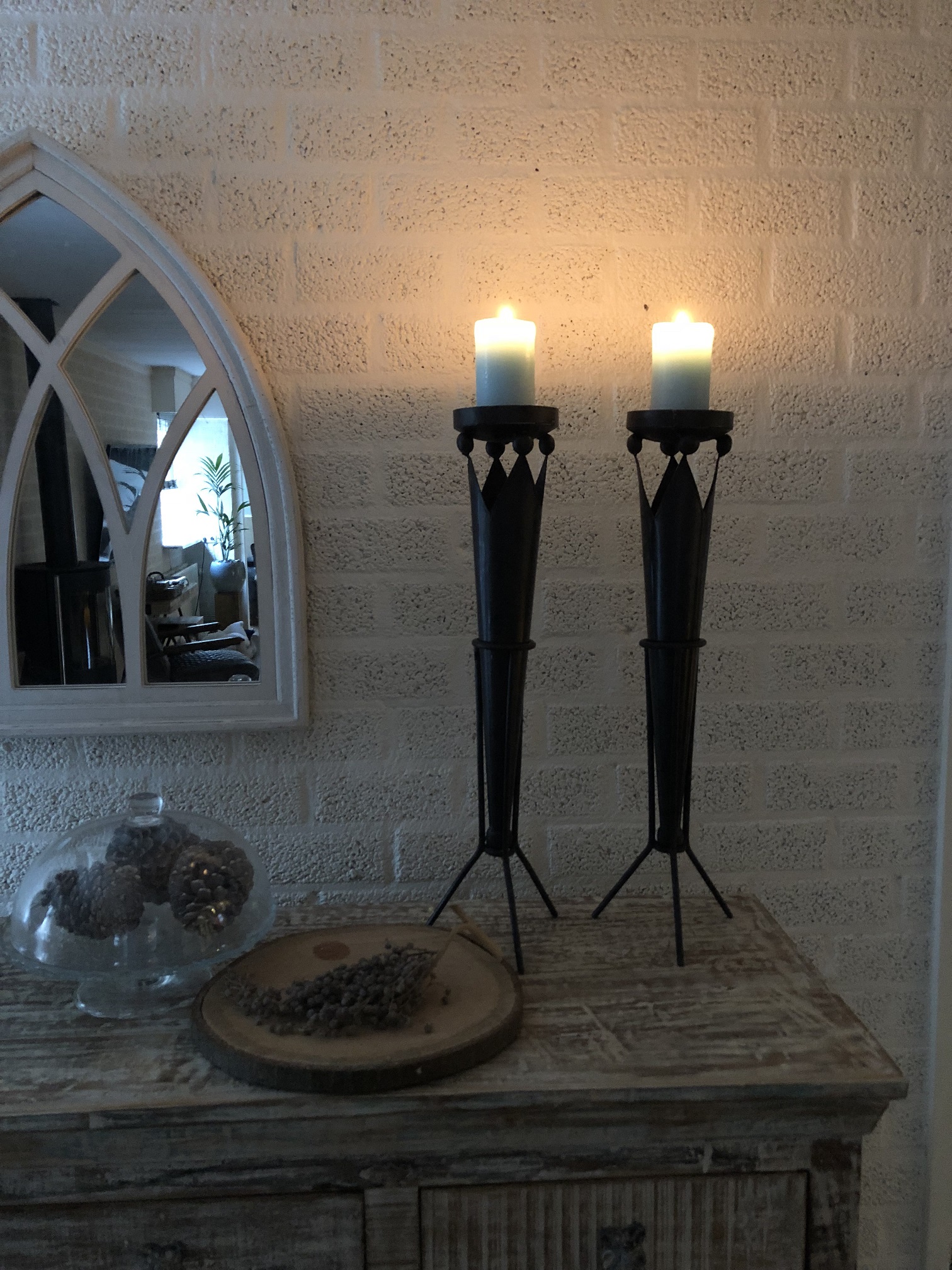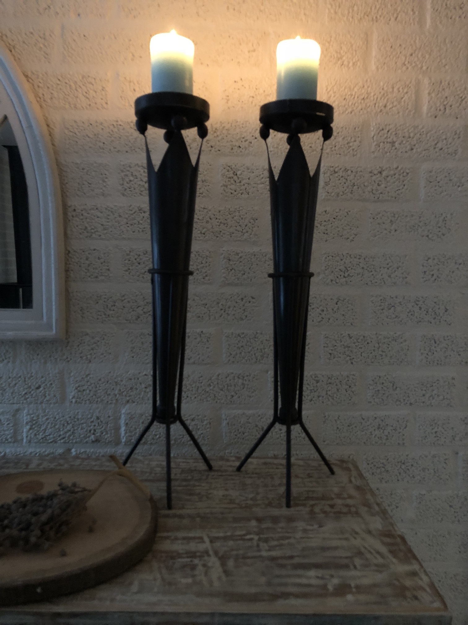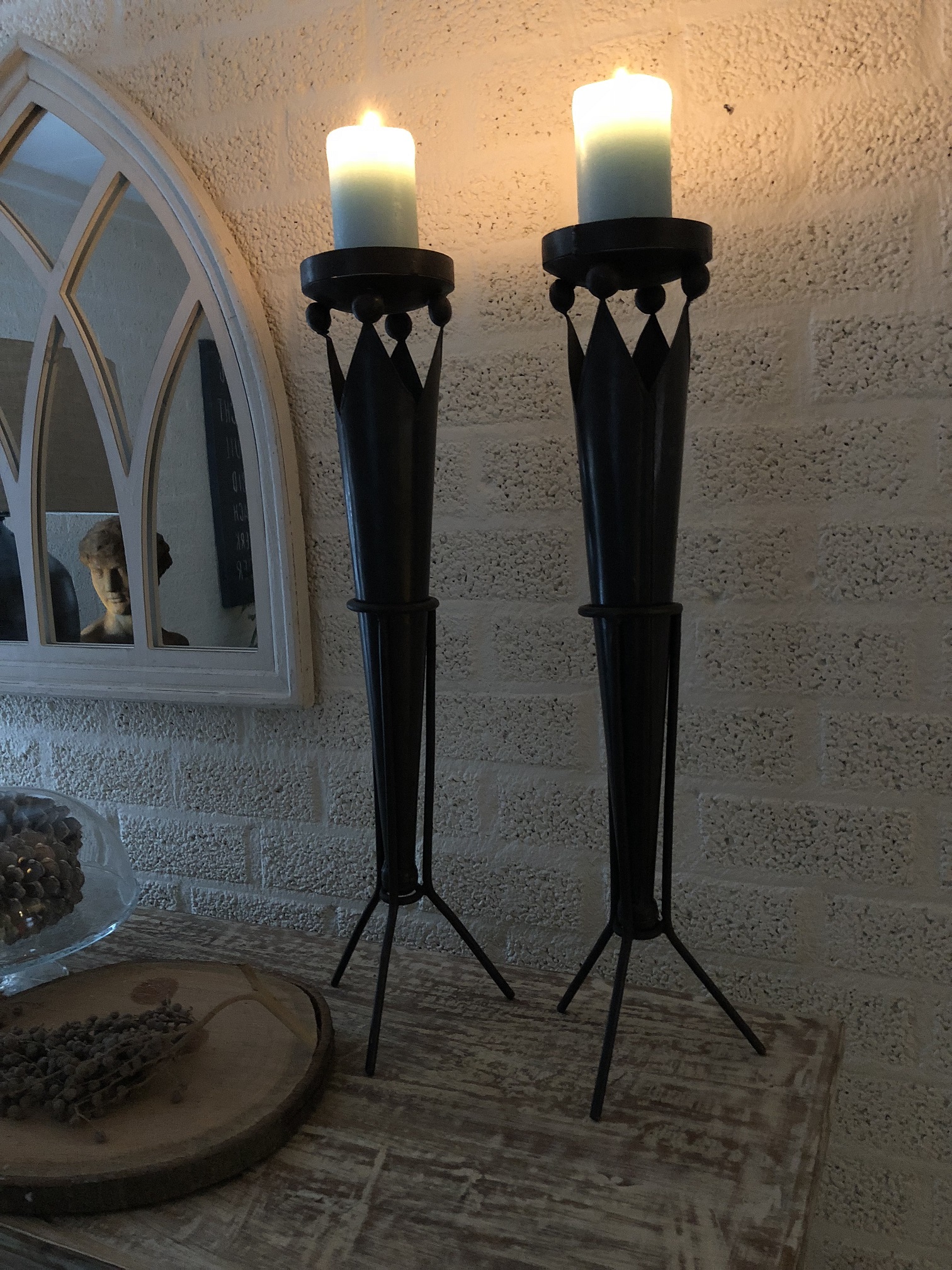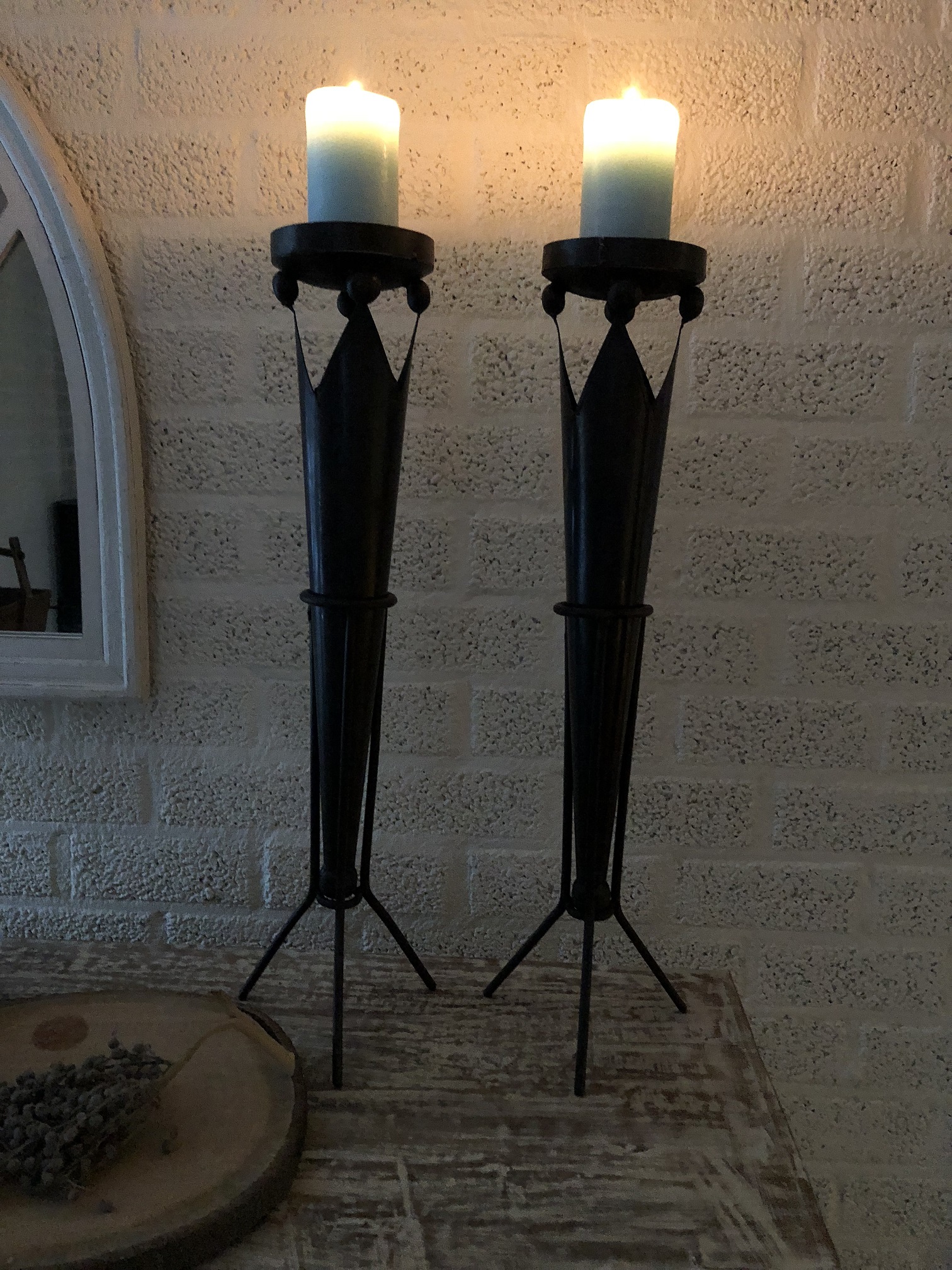Schönes Set von stehenden Kerzenhaltern in Form einer Fackel, es hat einen schlossartigen Eindruck, sehr schön.