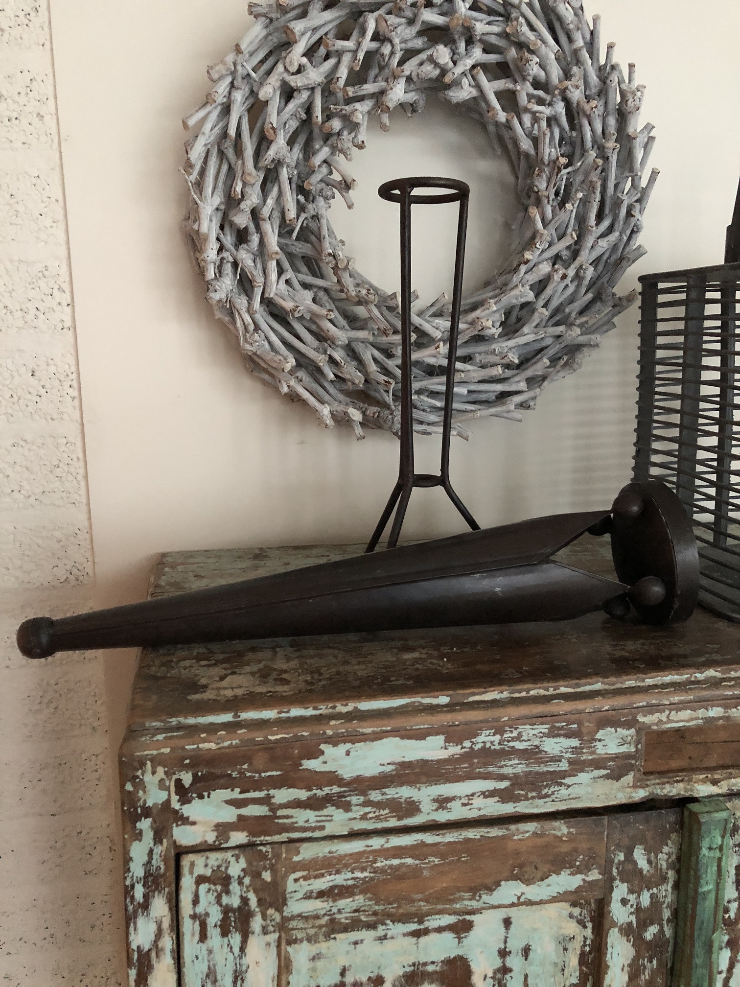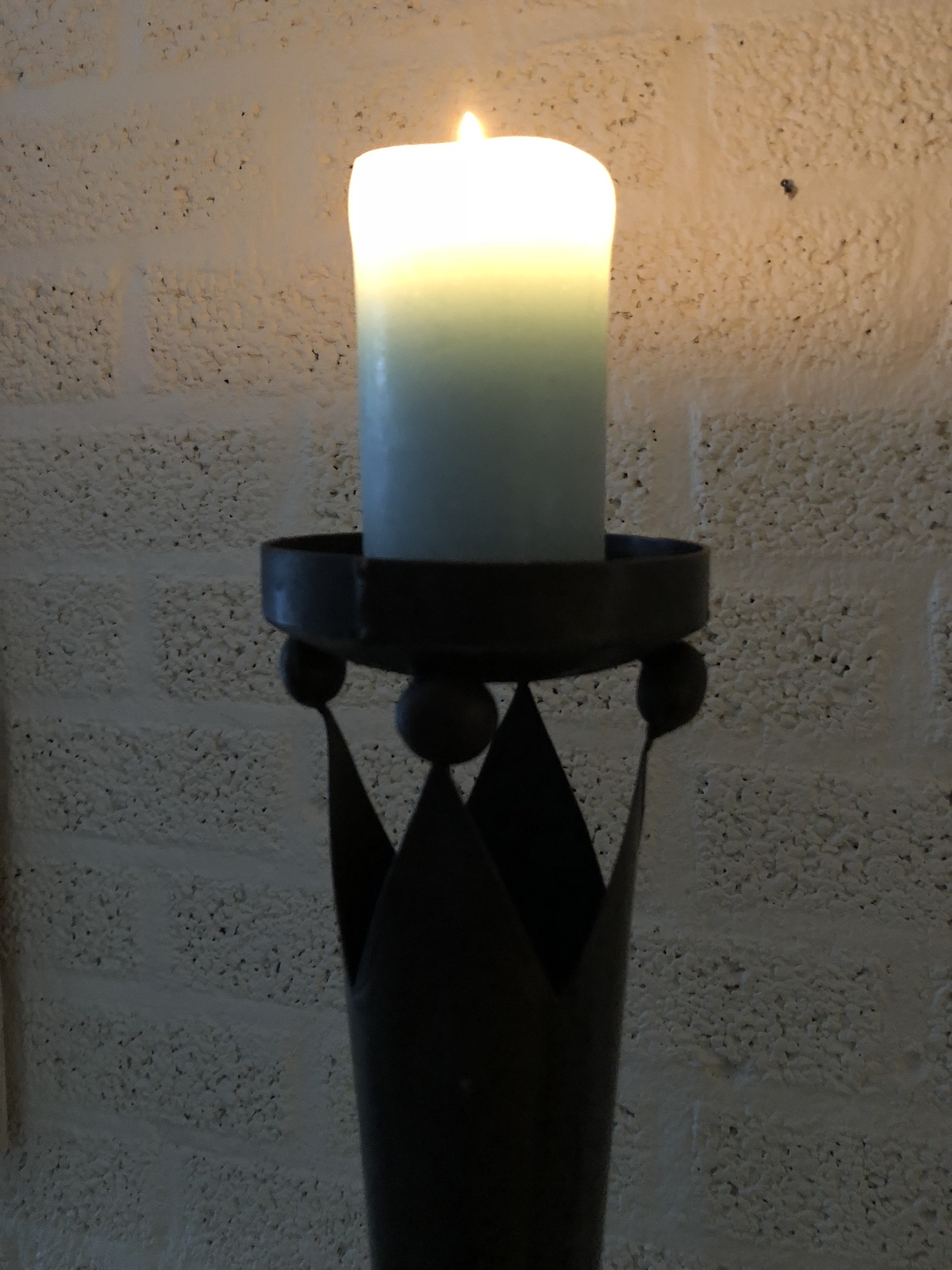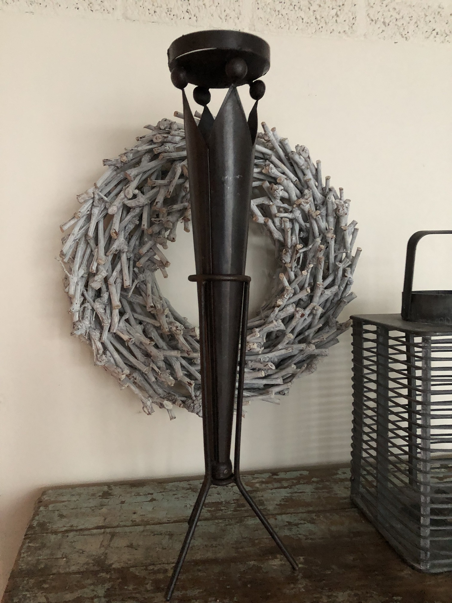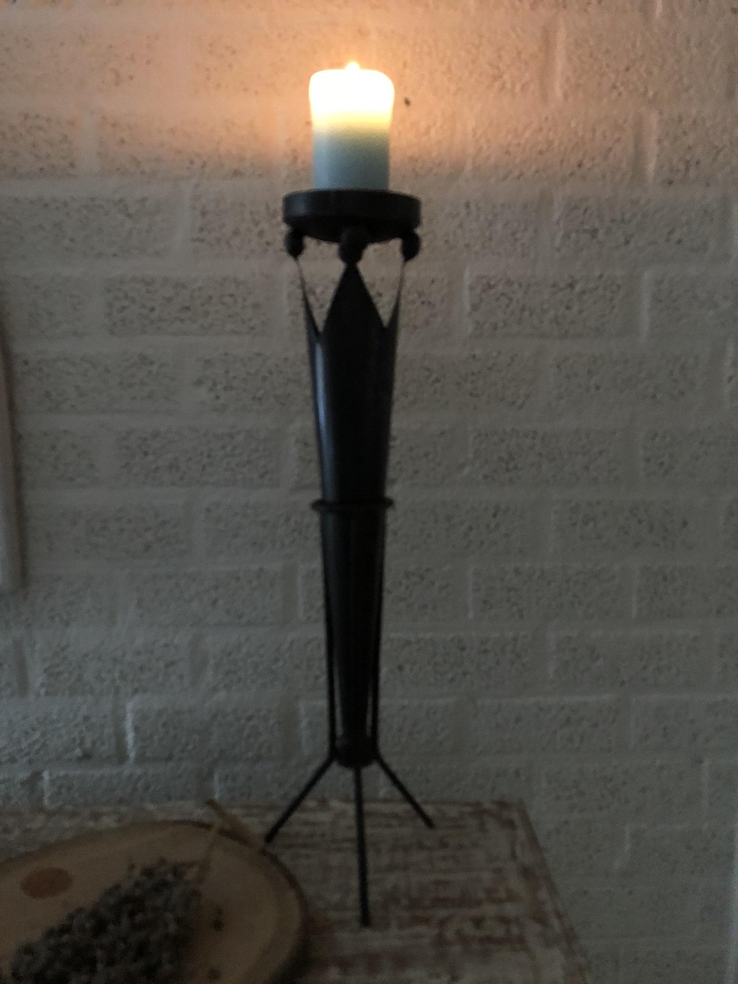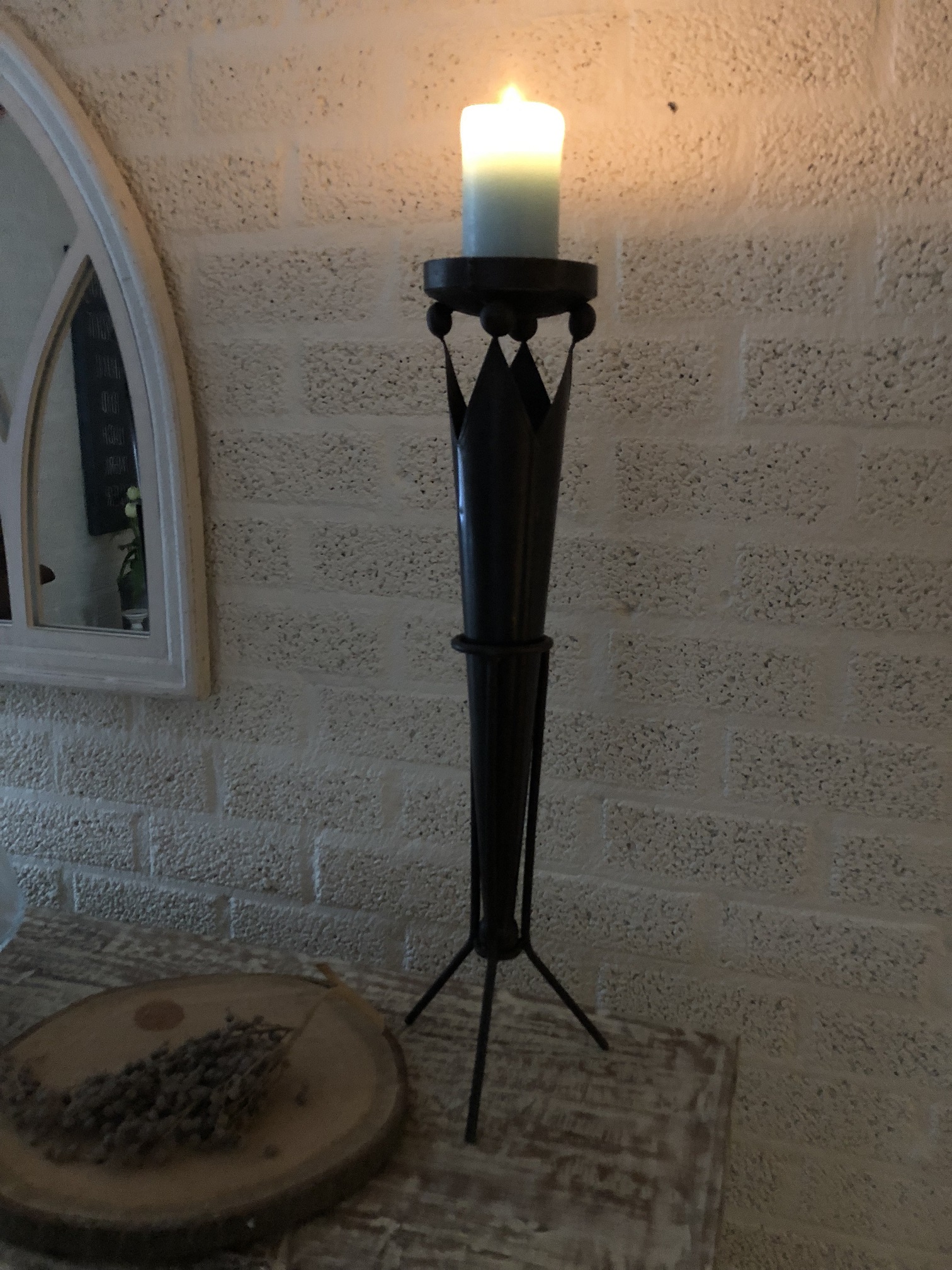 Schöner stehender Kerzenhalter in Form einer Fackel, er hat einen schlossähnlichen Eindruck, sehr schön.