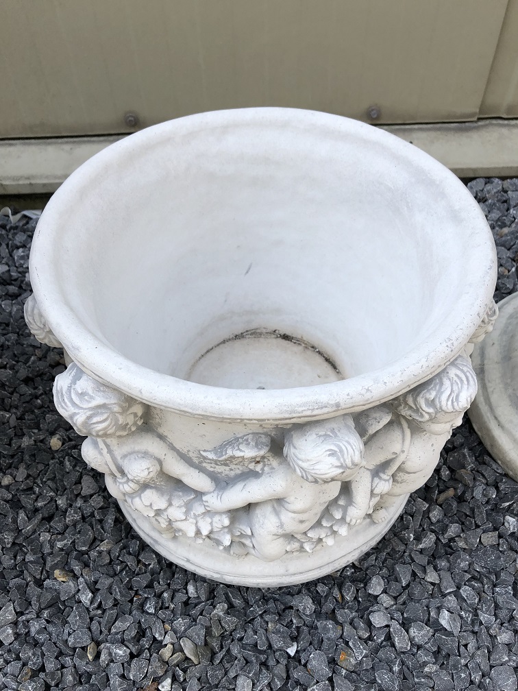 Schöne schwere volle Stein Blumentopf Vase mit Engeln