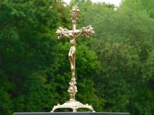 Sehr großer kniender Engel mit Flügeln auf einem großen Sockel, sehr groß!