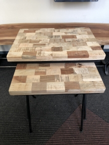 Der Ständer ist mit Klammern am Sockel befestigt (Holzplatte 46 x 46 cm)