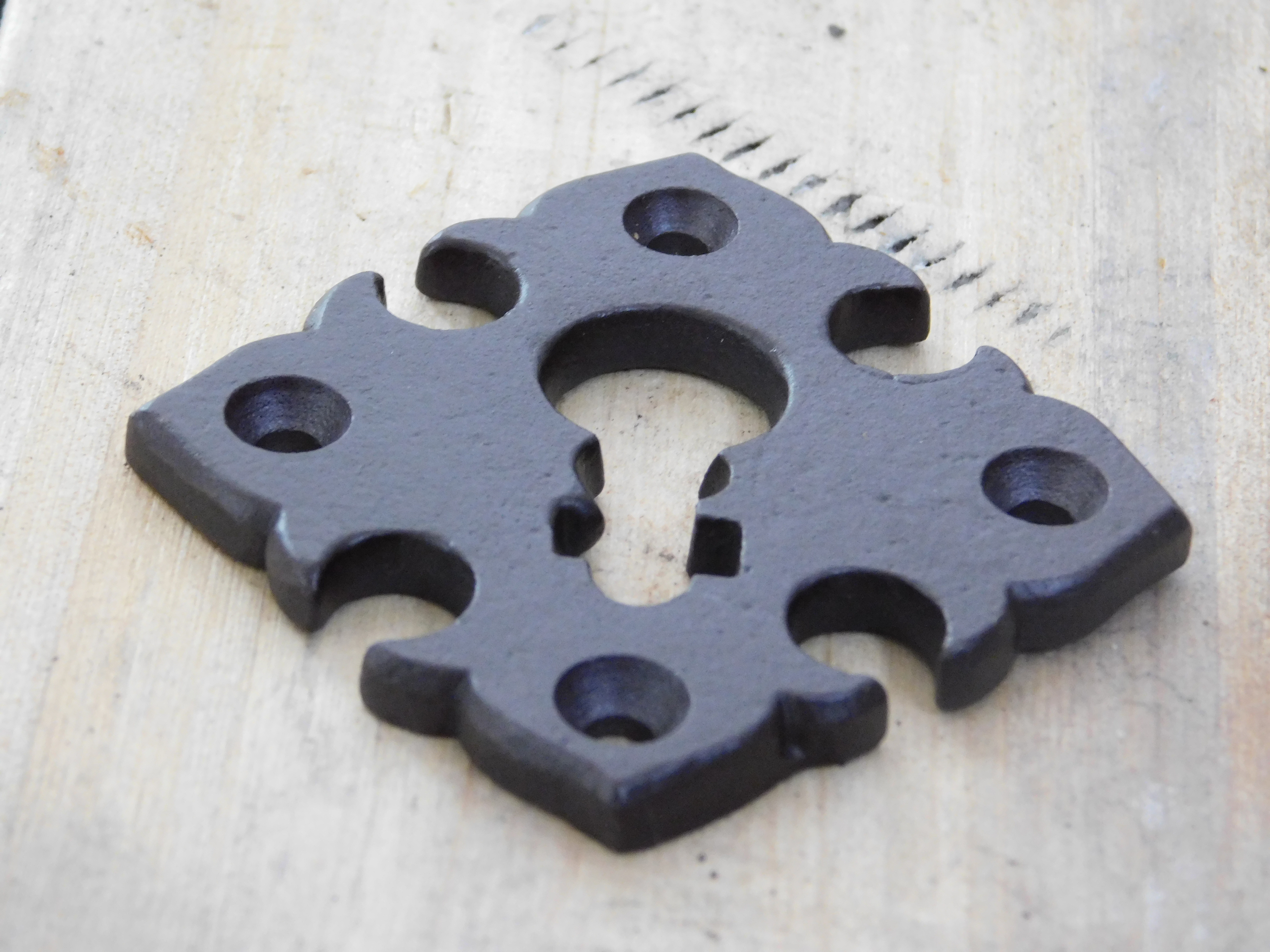 Diese Rosette besteht vollständig aus Eisen und ist in der Farbe Dunkelbraun lackiert.