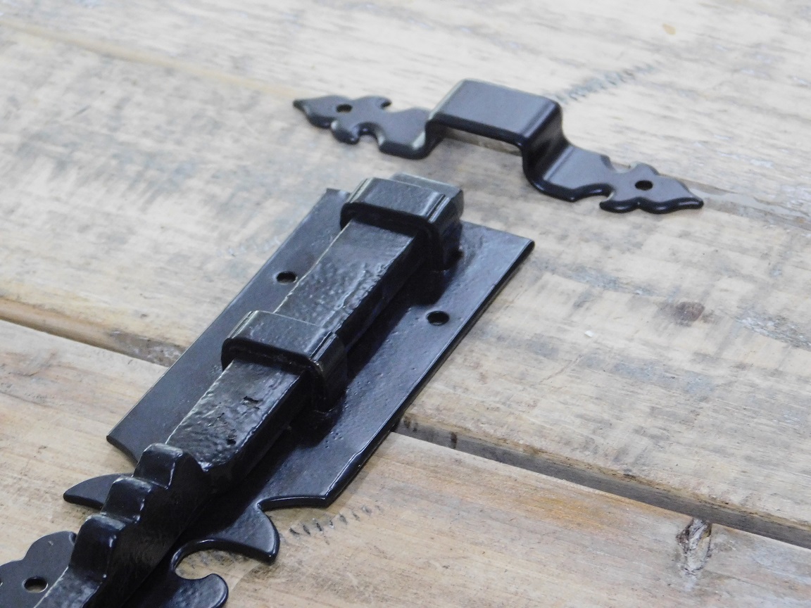 Schiebeschloss, Schmiedeeisenriegel, mattschwarz