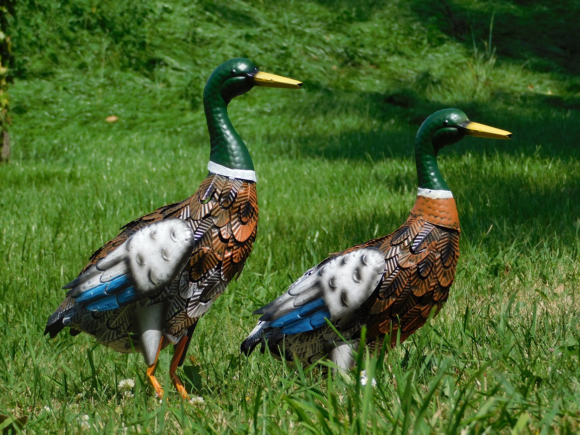Die eine Ente hat eine Höhe von 35 cm, die andere von 45 cm, so dass sie sich perfekt als charmantes Duo ergänzen.