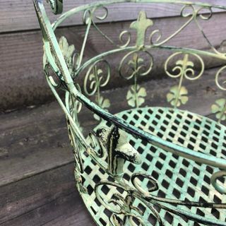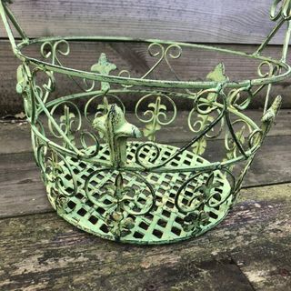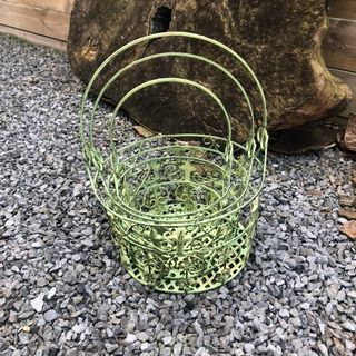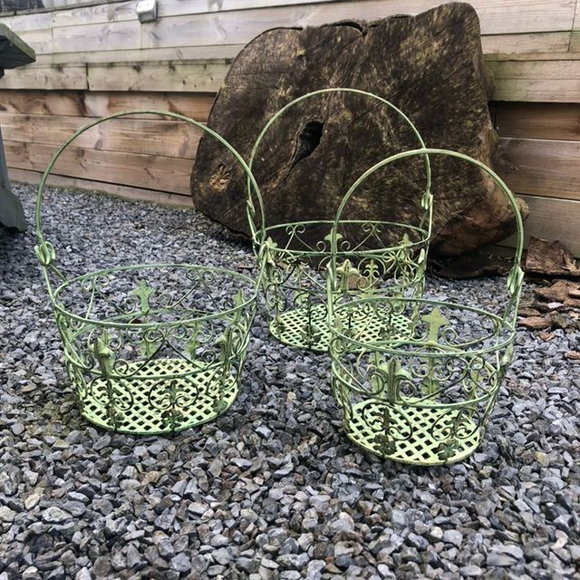 Schönes Set aus 3 Blumenkörben mit französischen Lilien, aus Eisen in der Farbe grün.