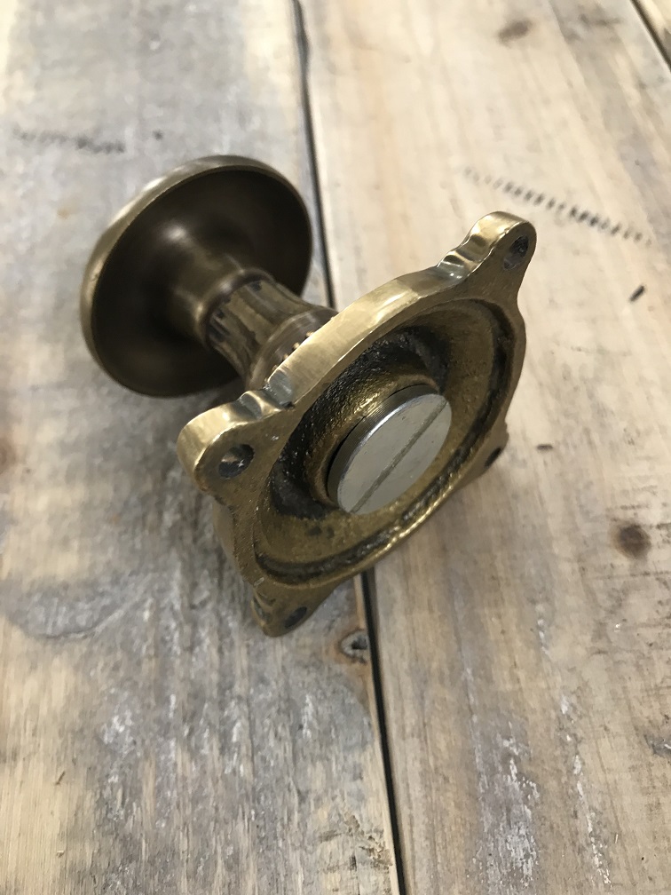 Der Knauf auf der Rückseite der Rosette ist mit einem dicken Bolzen befestigt.