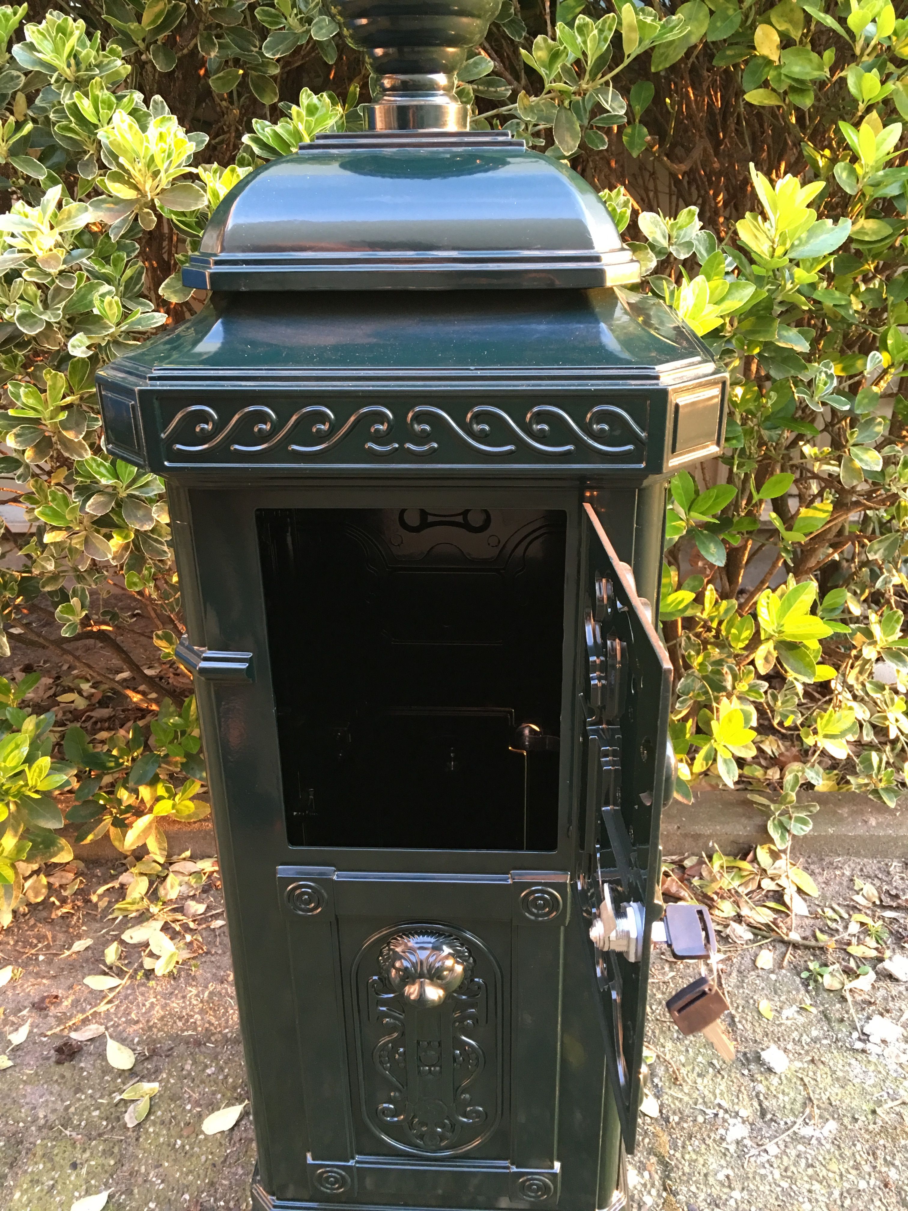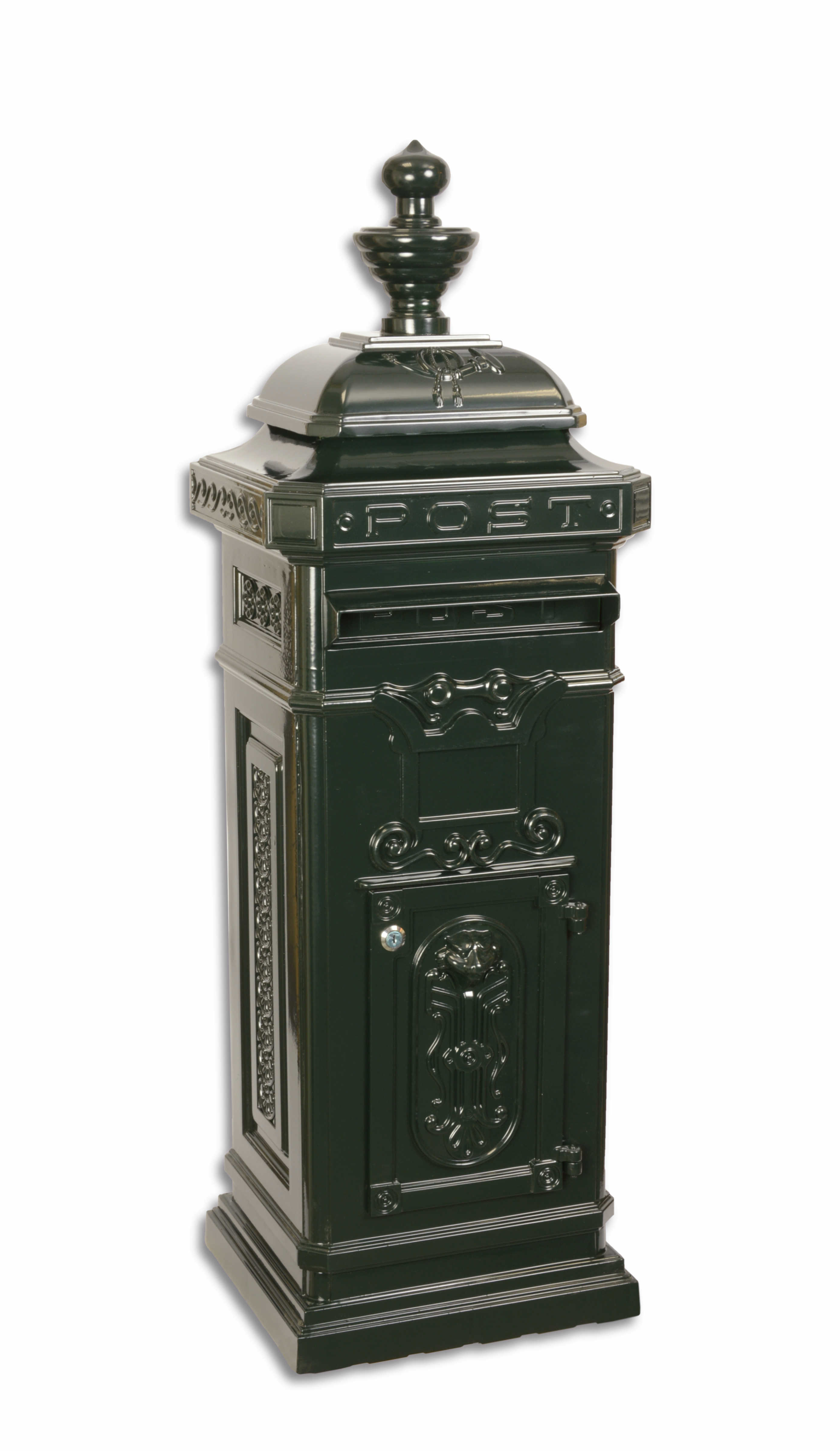 Wunderschöne, auffällige Briefkastensäule aus Aluminium, grün peobeschichtet.