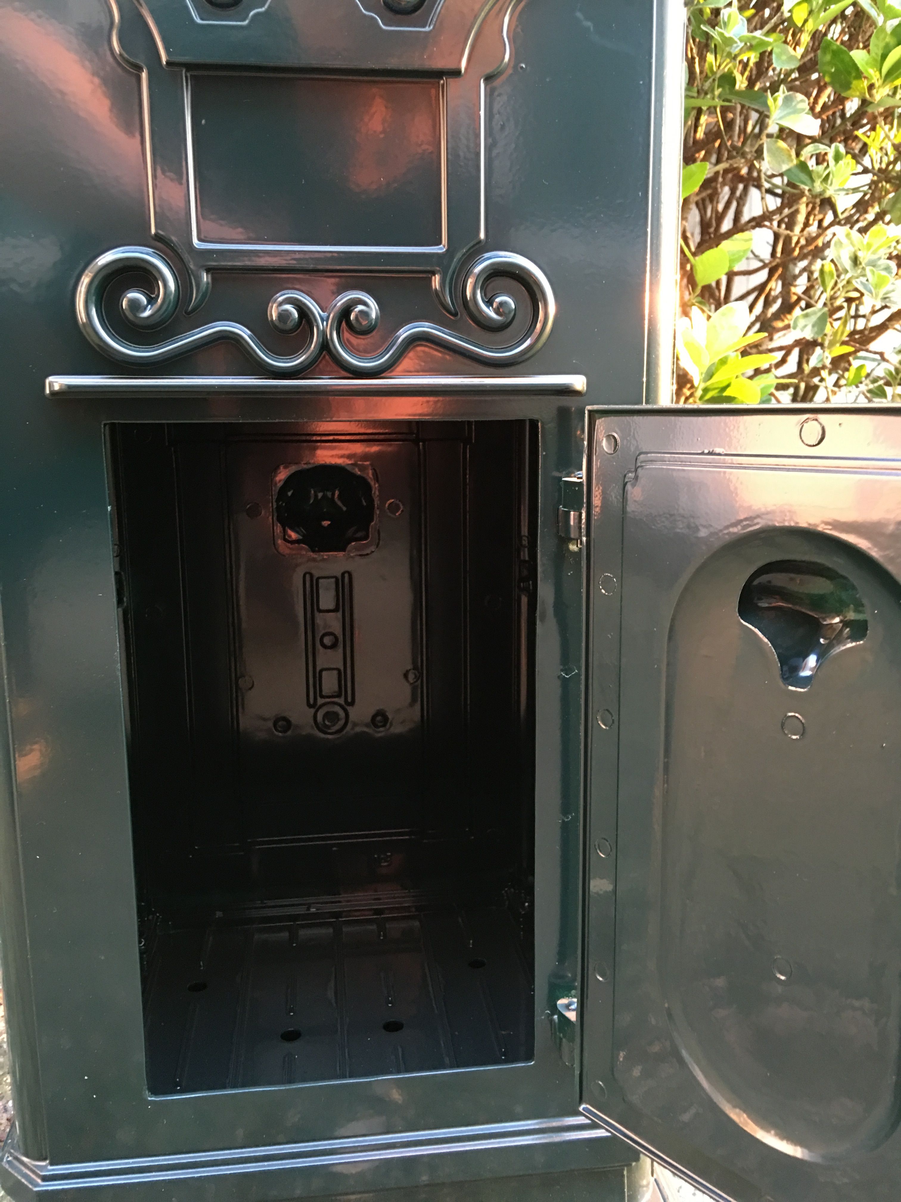 Der Briefkasten kann von 2 Seiten geleert werden und hat einen großen Postbehälter.