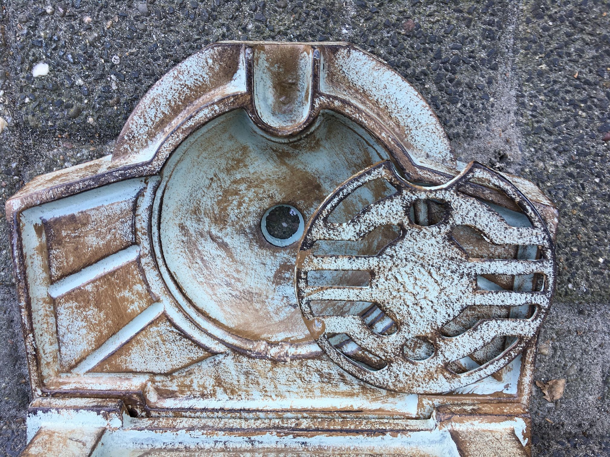 Gartenbrunnen, Gusseisen, grau-grün