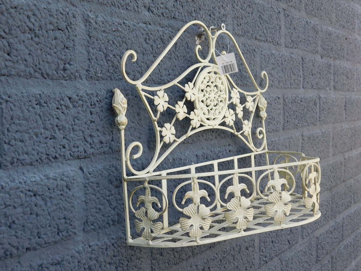Wandregal , Schmiedeeisen, cremeweiß , mit 1 Ablagefläche, Blumen-, Pflanzenregal