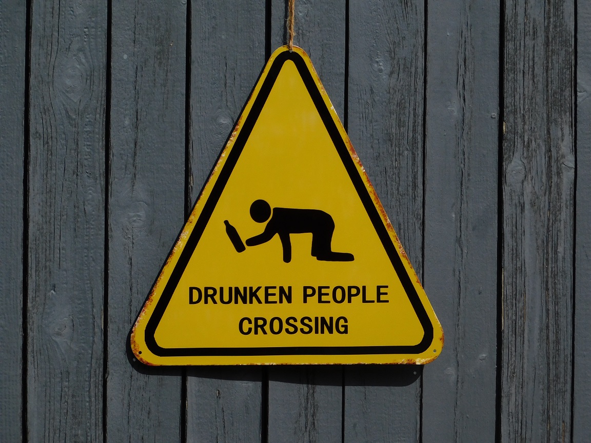 Wandtafel - betrunkene Menschen kreuzen - Metall