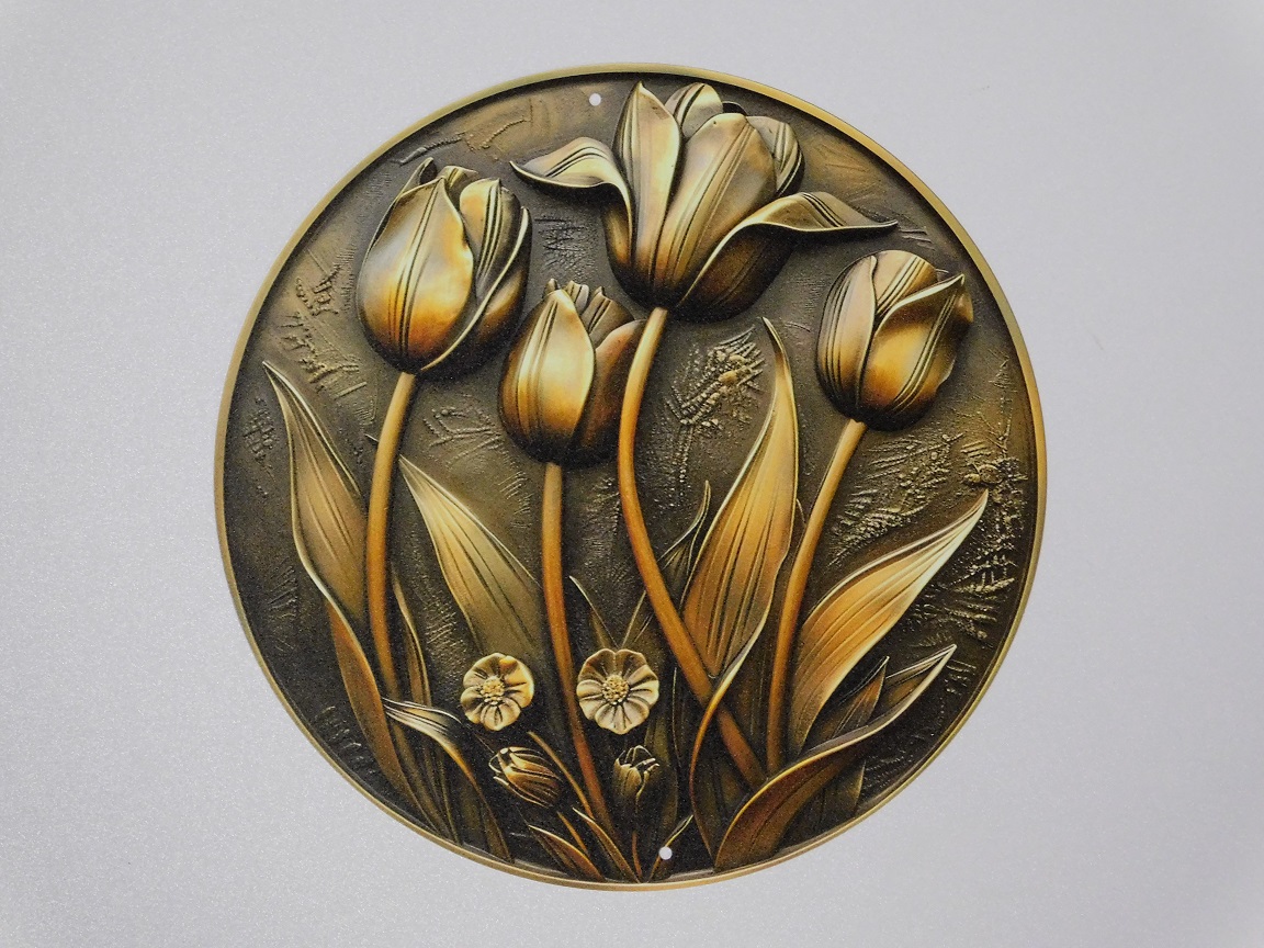 Das Metallmaterial garantiert Langlebigkeit und einen modernen Look, während die detaillierten Tulpen- und Blumenmotive einen Hauch von natürlicher Schönheit und Fröhlichkeit verleihen.