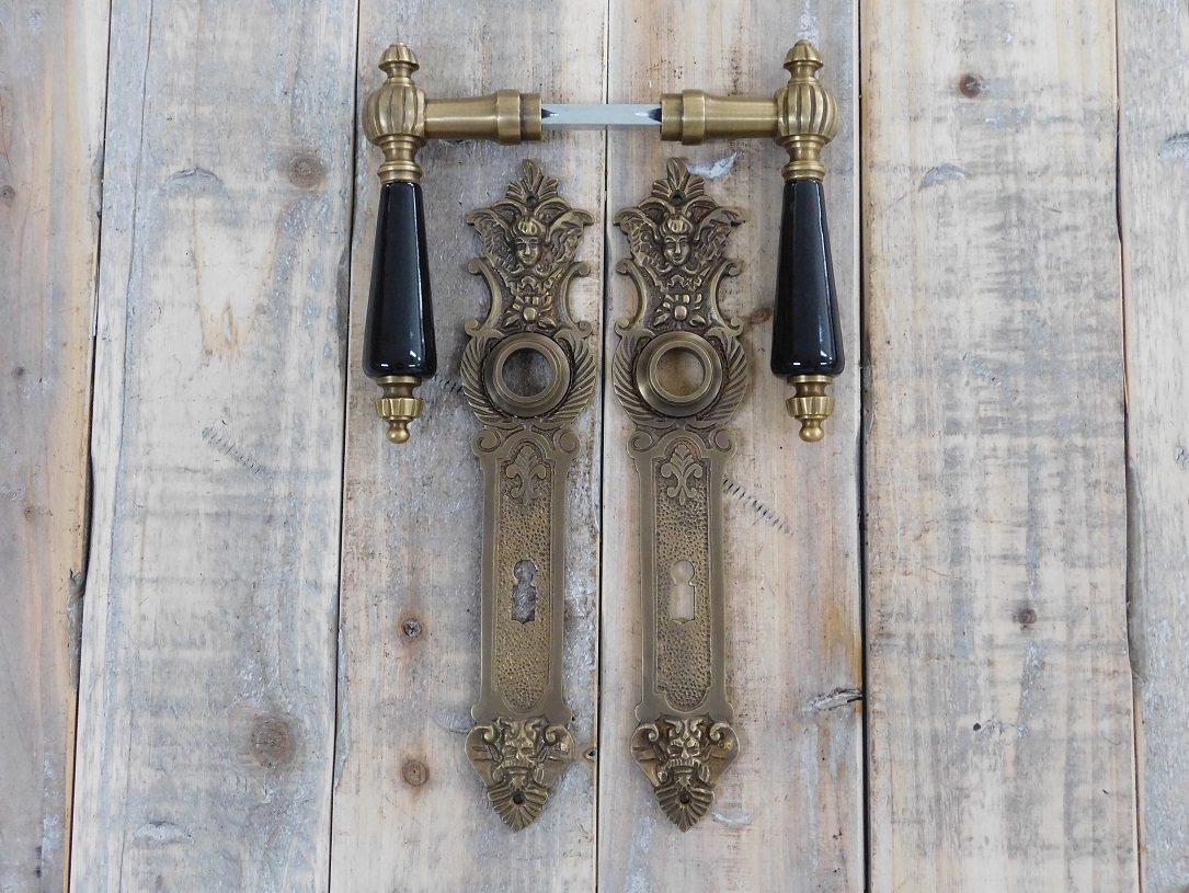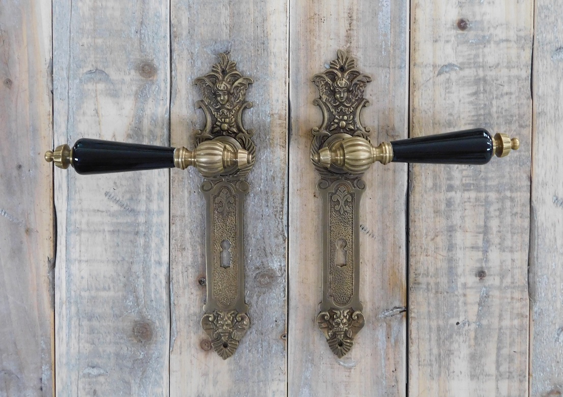 Levering: 1 Deur Montage: 2 vergrendelingen Jörn patina met zwarte porseleinen handgrepen, 2 Lock Covers engelen, messing