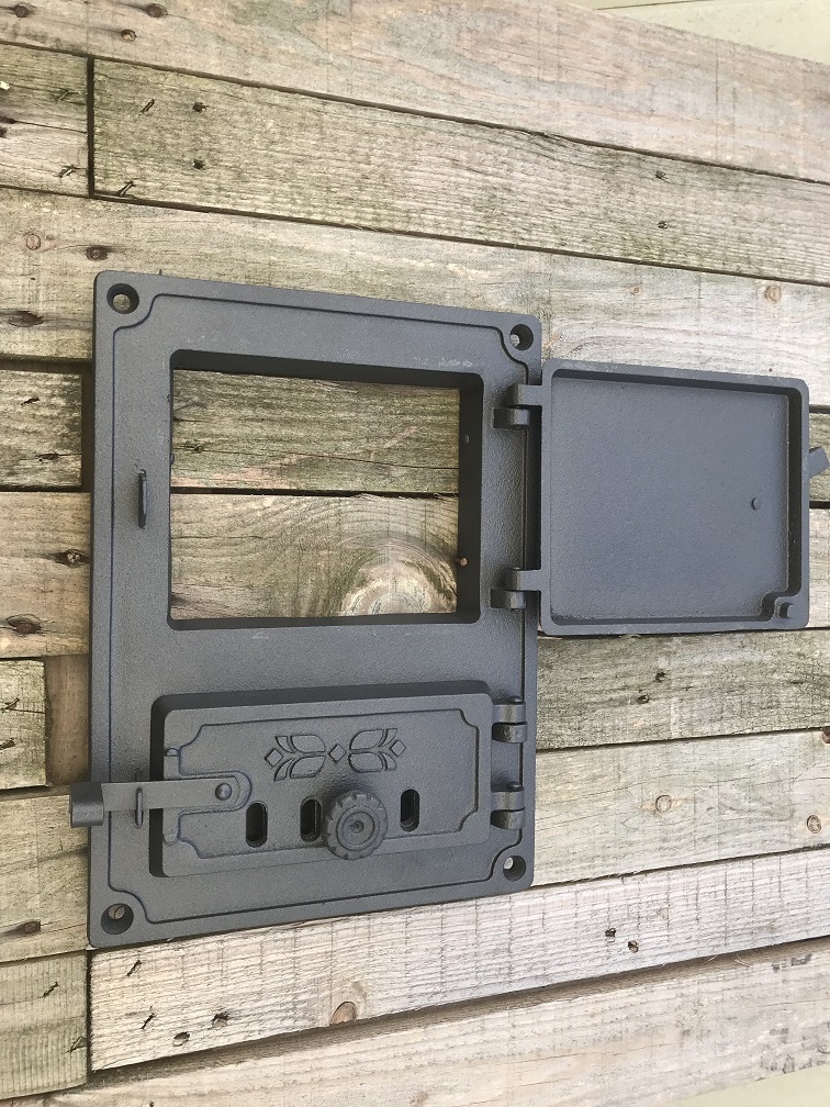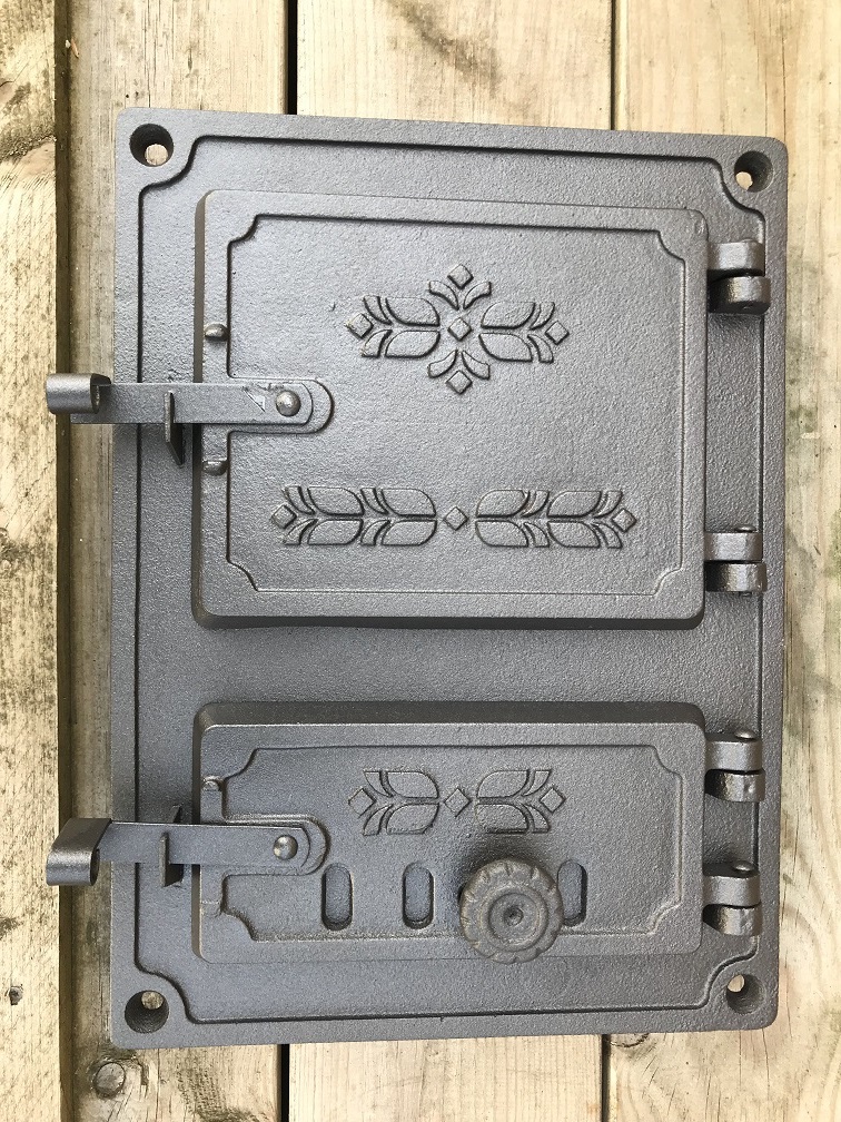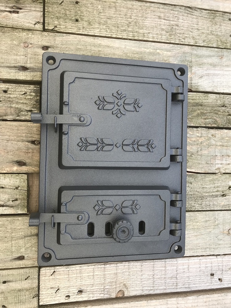 Build a stove or for the oven itself. This is a dream for many rural dwellers. Often failed due to the lack of oven doors. Here we offer a harmonious, manufactured according to the old model oven door made of cast iron. It is equipped with a closing cap for the pull and close function. The beautiful, round rotating antique pattern on this door in front of the stove makes the entire object appear historically. The door is delivered: untreated, colors can be chosen if desired but with refractory paint !!!