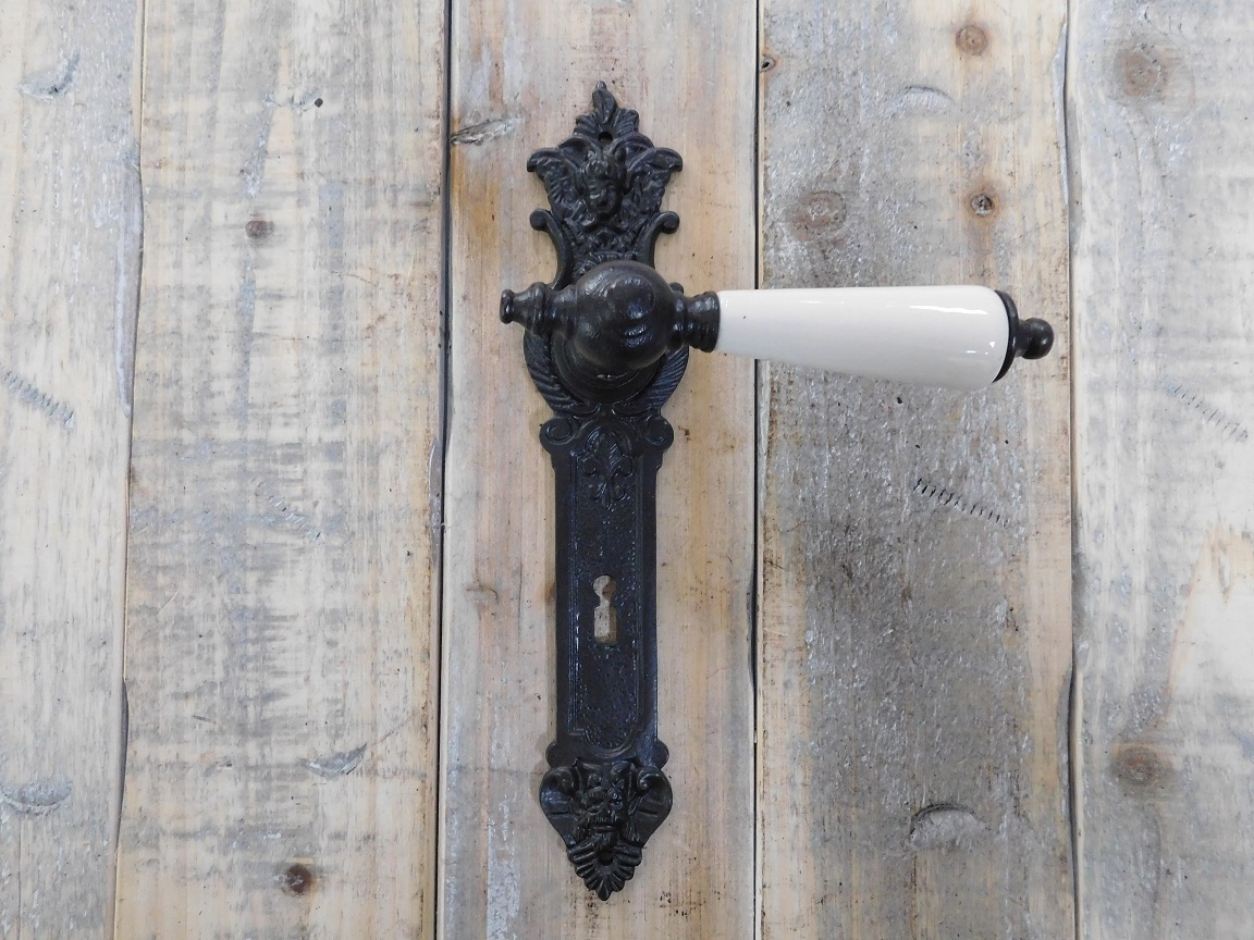 Deurknoppen met keramische handvat en 2 x lange plaat met engel - motief.