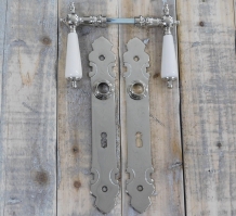 aus Hand-schmeichelnder altweißer Keramik. Dieses wunderbare und wie antik wirkende Set Türbeschläge ist ideal für die Denkmalgeschützte Renovierung. Die Messing-Türbeschläge passen aber auch ebenso schick auf die neu gefertigte Haustür!