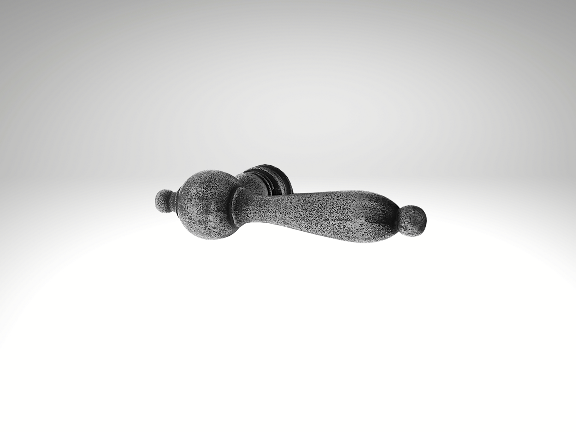 Door knob with rosette, antique iron, fixed knob. A very nice door knob with rosette, made of antique iron. Not rotatable. This doorknob looks very nice with an antique door, but is also definitely suitable for modern doors. Dimensions: Knob: diameter 7 cm x height 7 cm Rosette: diameter 8 cm Screw: 93 mm length, thread size: M10 Weight: approximately ...