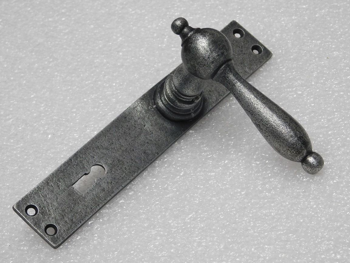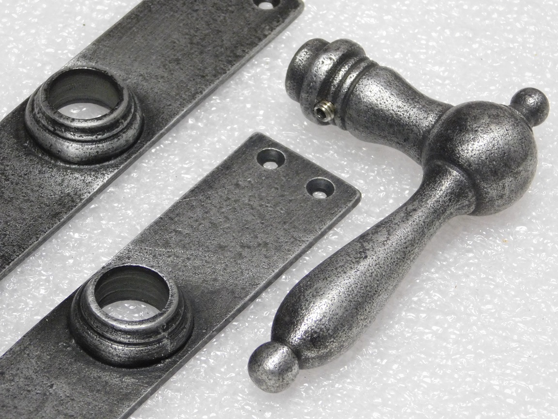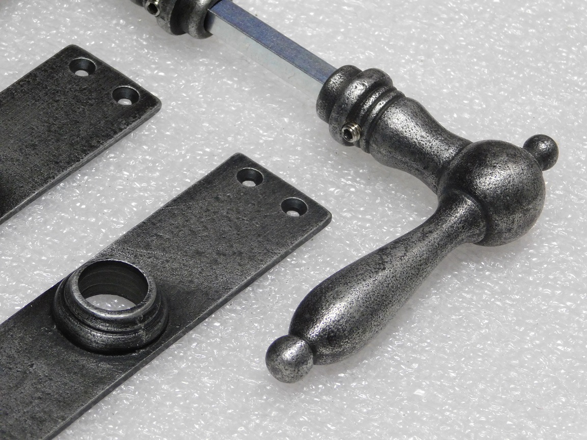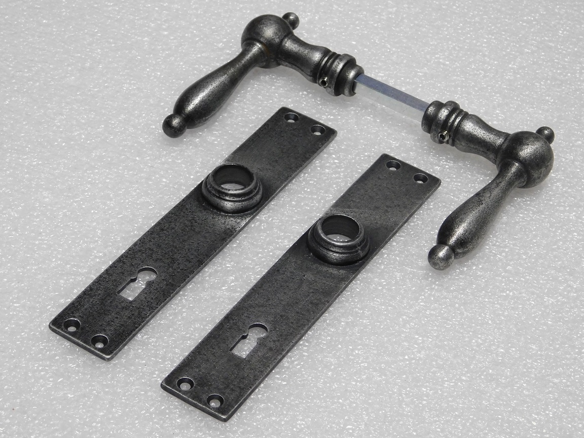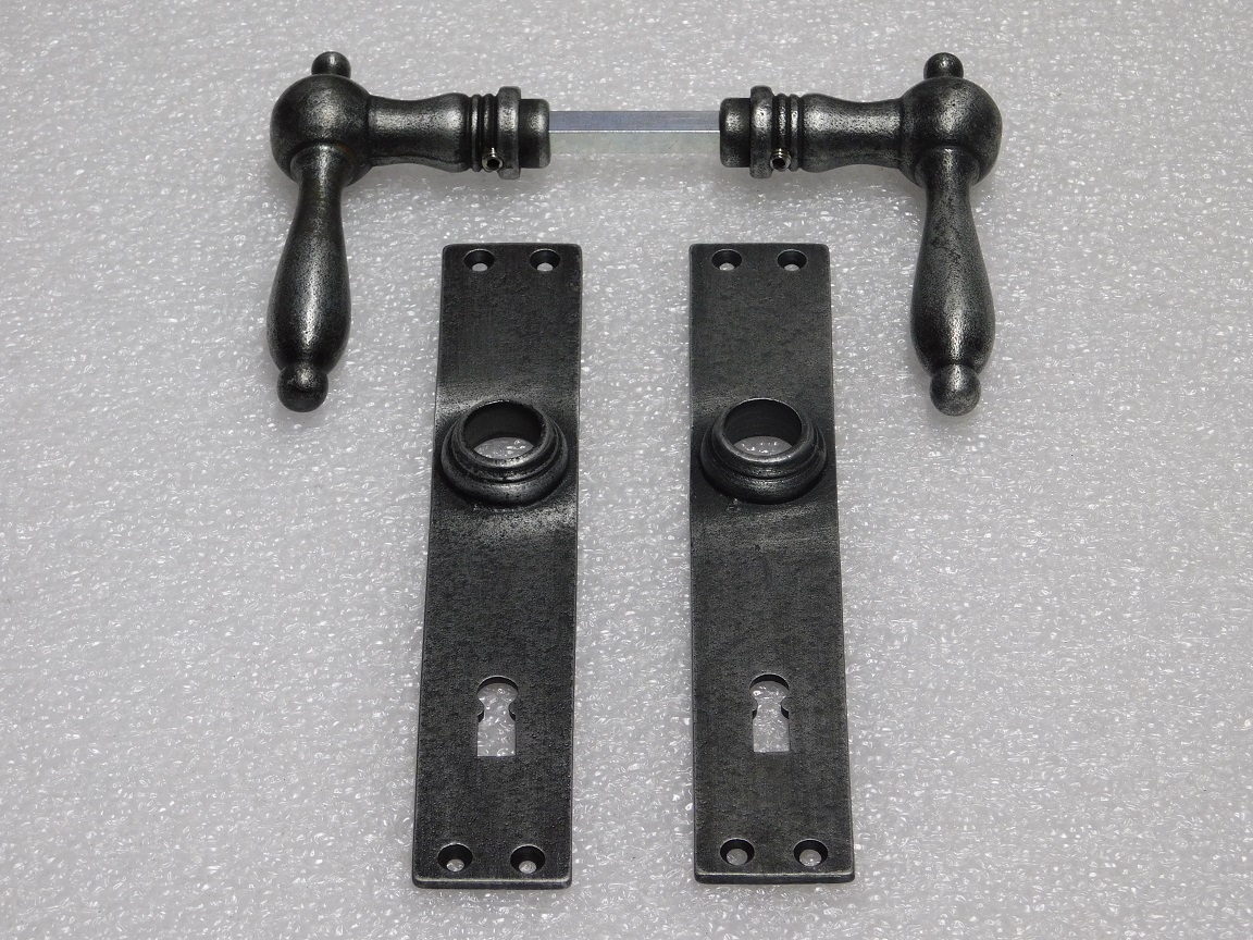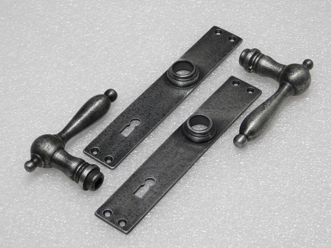 Door Fittings Set - Cambridge Handles + Blanco BB 72 Door Plates - Cast Iron, Galvanised