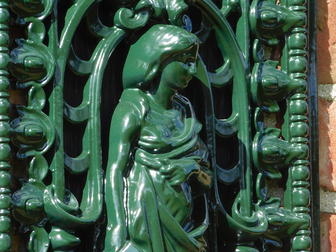 This graceful grille combines craftsmanship and art, with an ornate image of a woman at its centre.