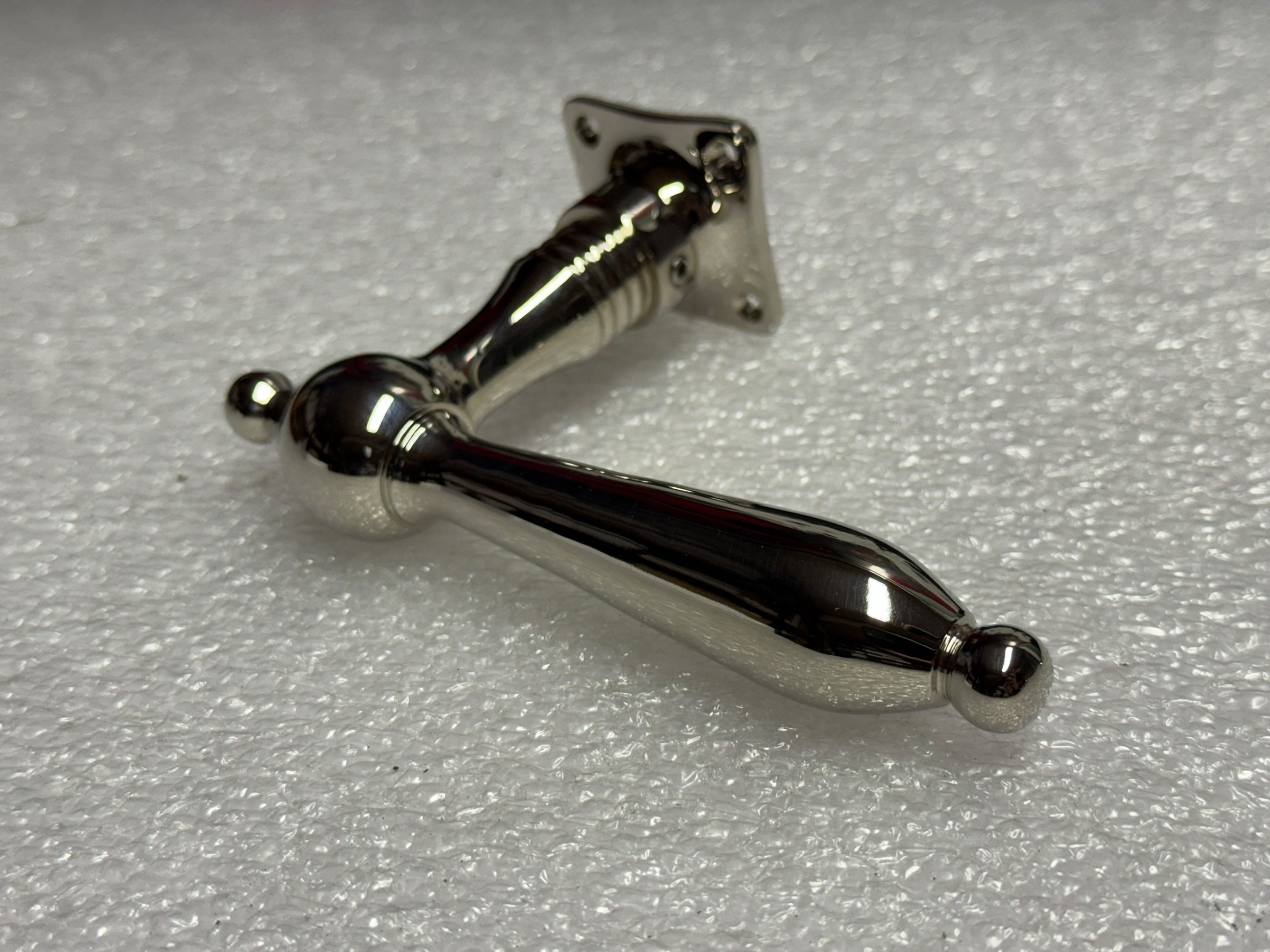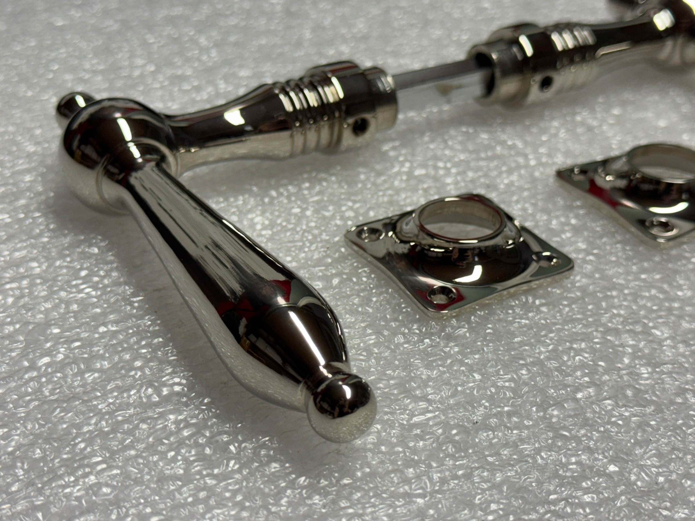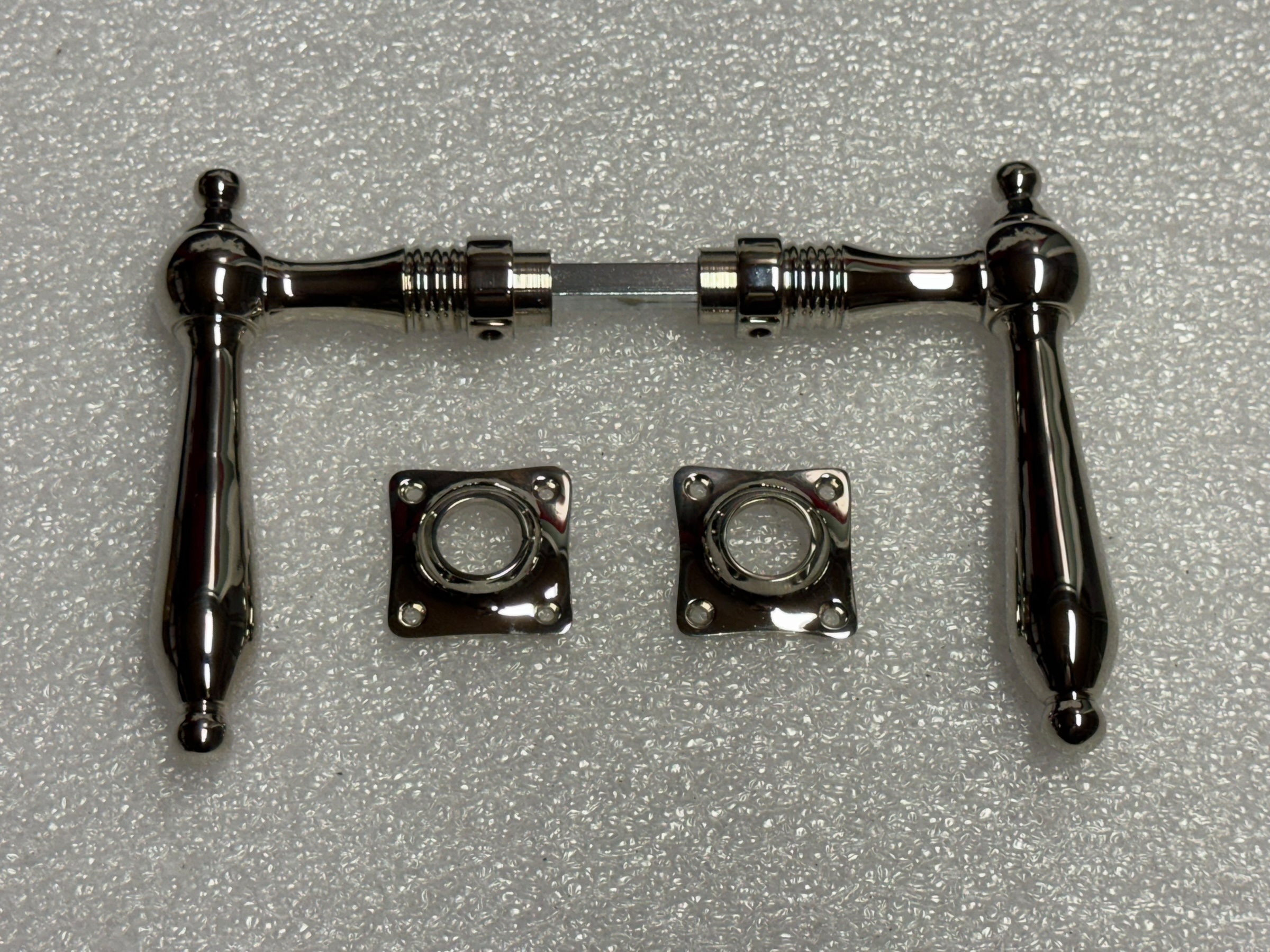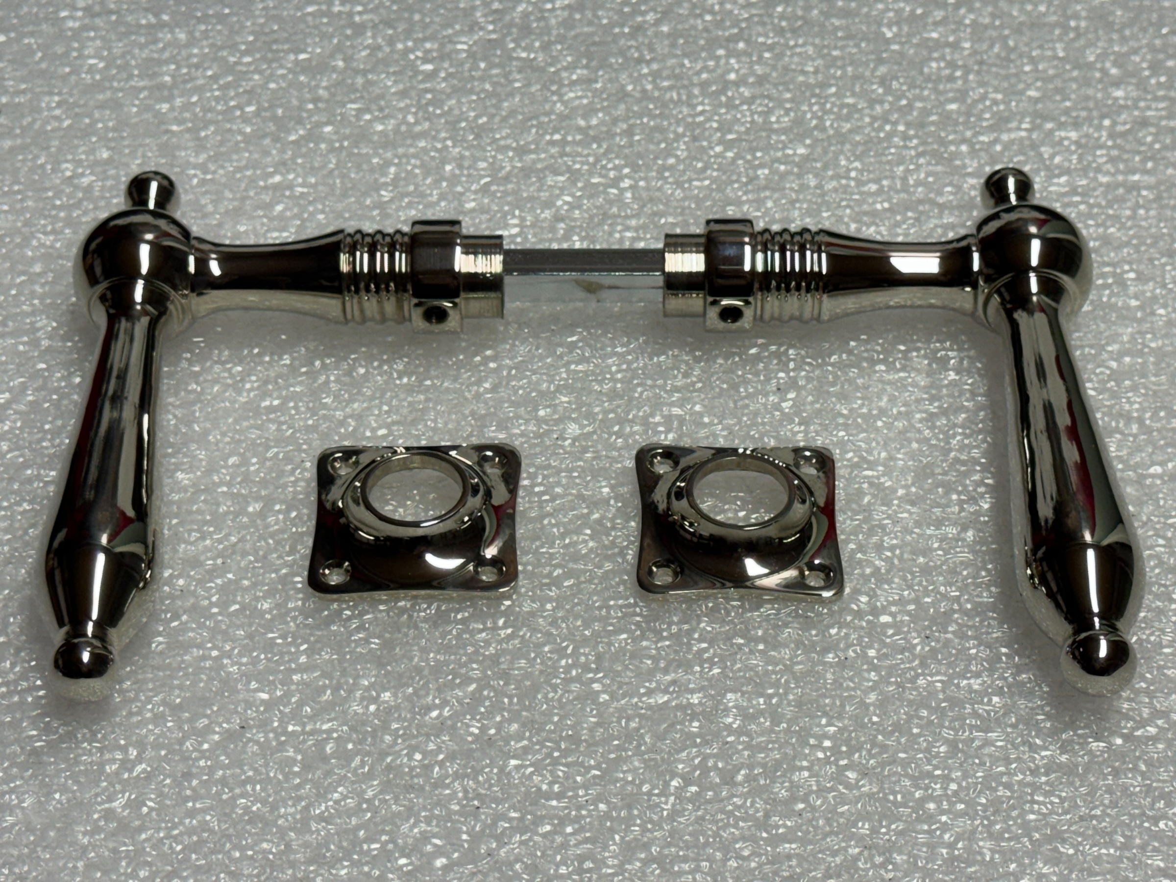 Door handle set – nickel chrome – polished handles and escutcheons.